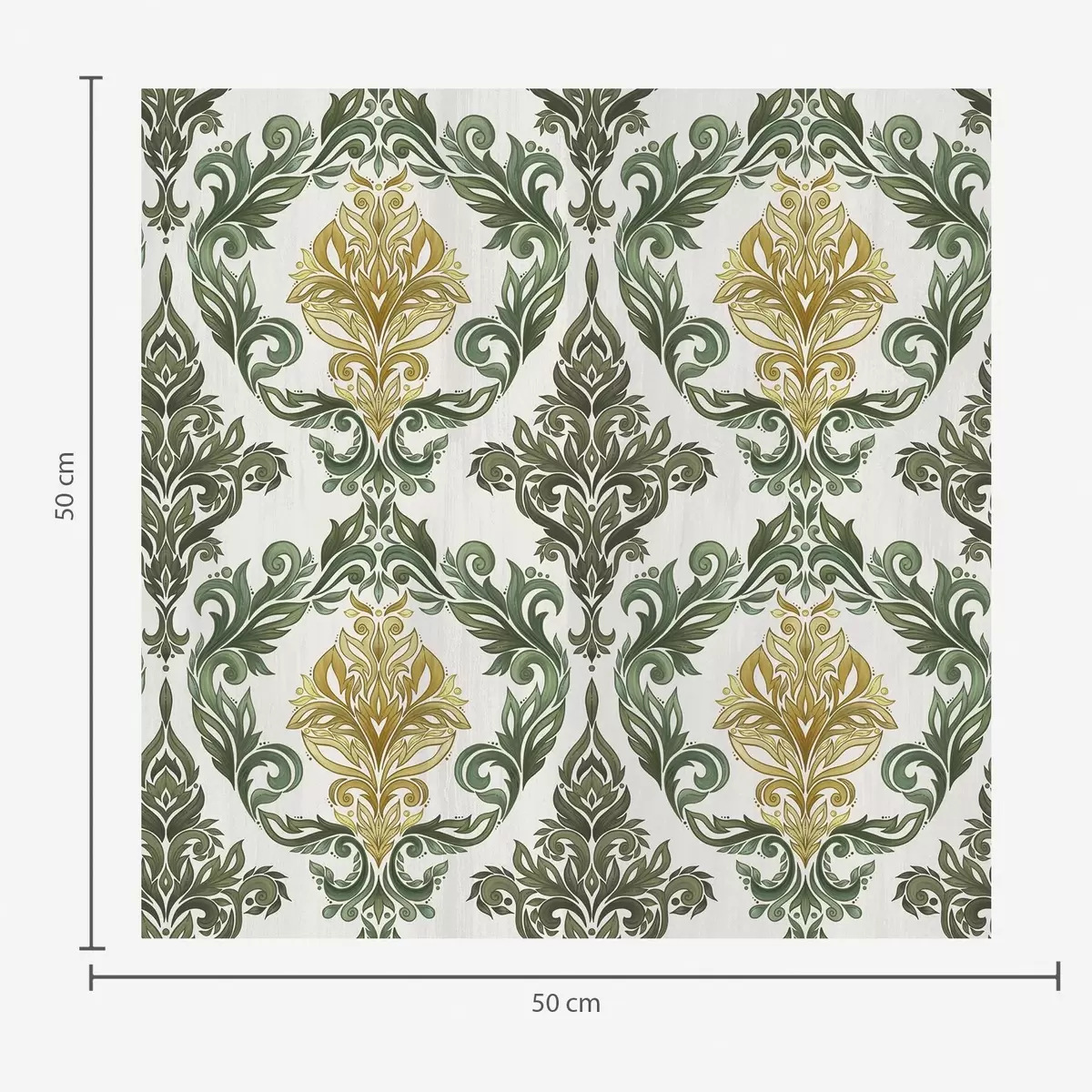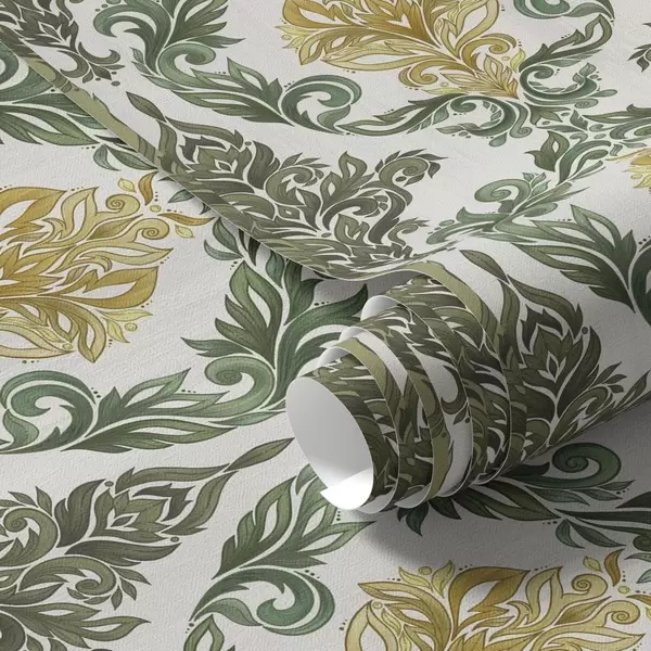 Papiers peints Damas avec des volutes vertes sur fond clair Nr. a00828v1