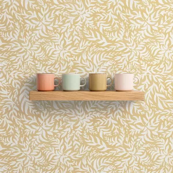 Papiers peints Motif de feuilles blanches sur fond ocre chaud, rythme tourbillonnant Nr. a00845