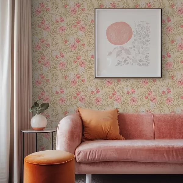 Papiers peints Fleurs roses, fleurs blanches et feuillage aux tons ocres Nr. a00855
