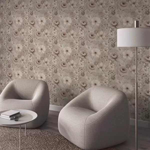 Papiers peints Motifs floraux beige sépia avec accents papillon et linéaires Nr. a00870