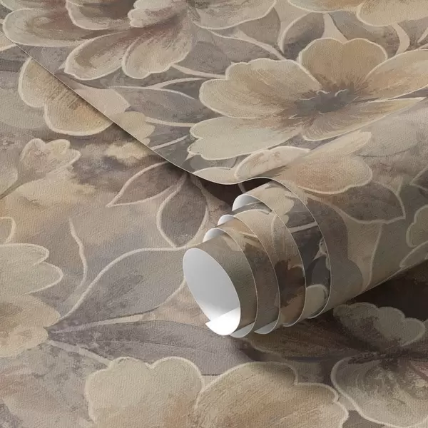 Papiers peints Fleurs beiges picturales sur fond abstrait fumé Nr. a00884