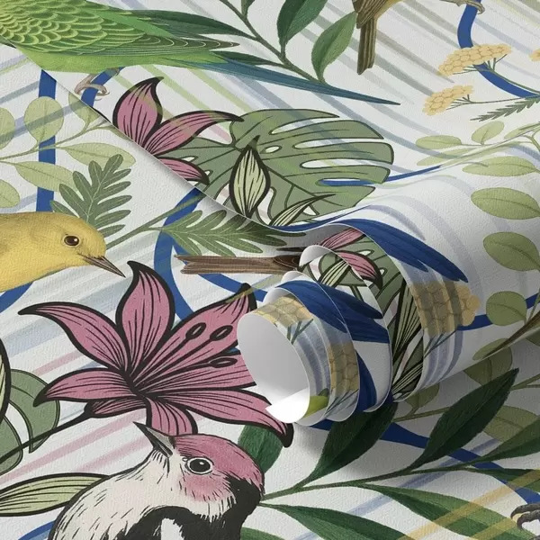 Papiers peints Oiseaux exotiques aux couleurs vives parmi la végétation tropicale Nr. a00887