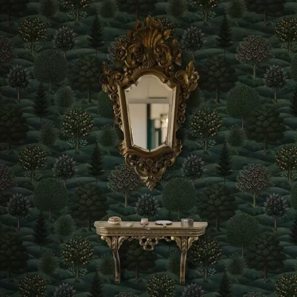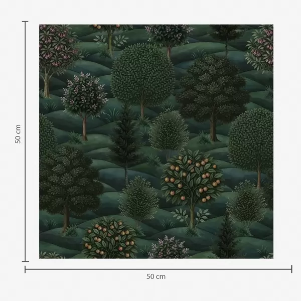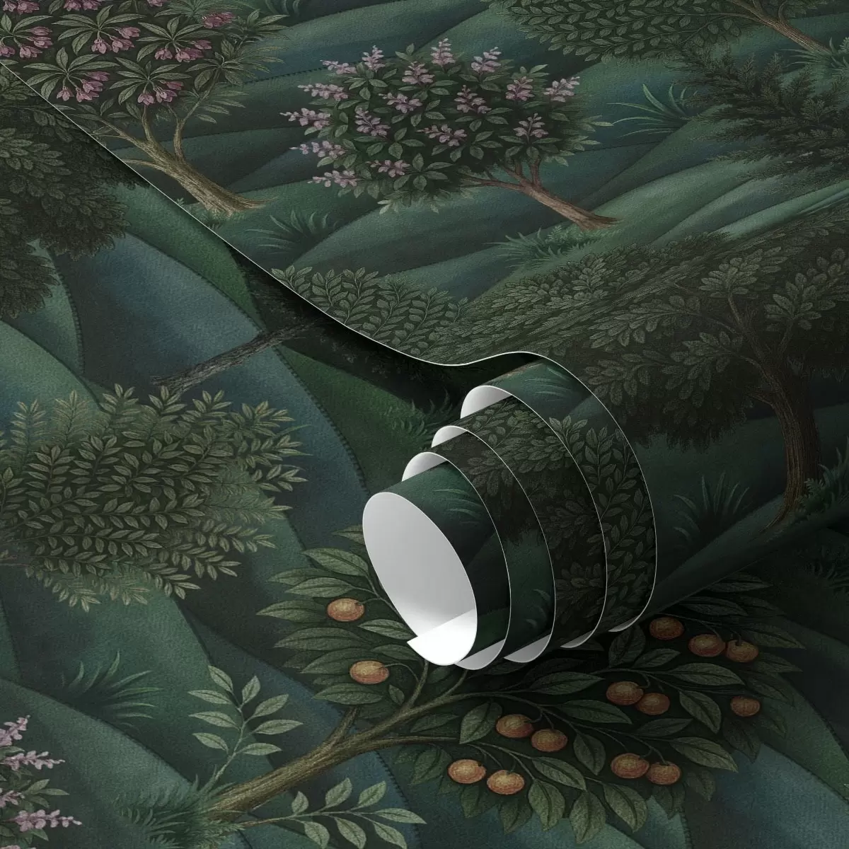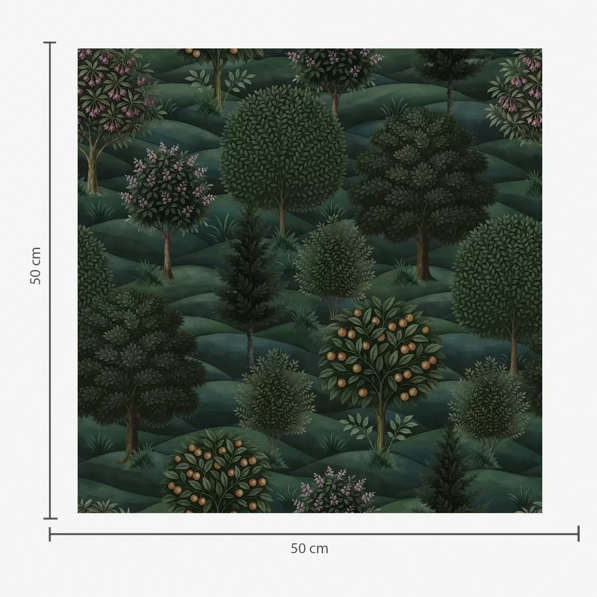 Papiers peints Paysage verdoyant et vallonné parsemé d'arbres disposés en motifs Nr. a00892