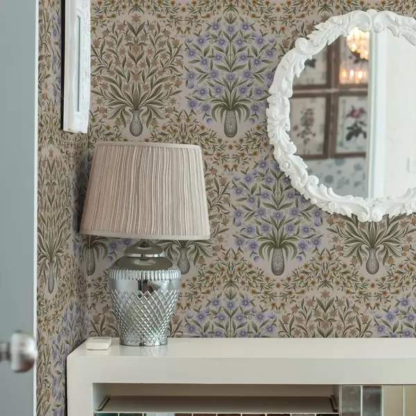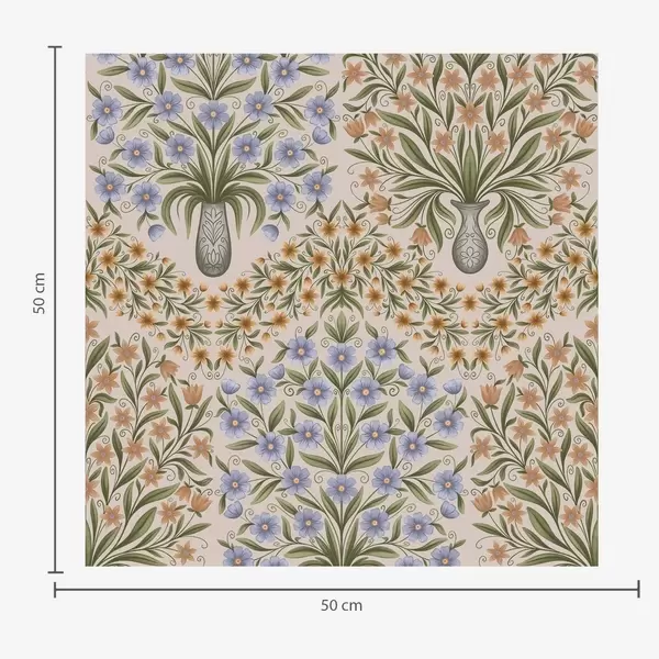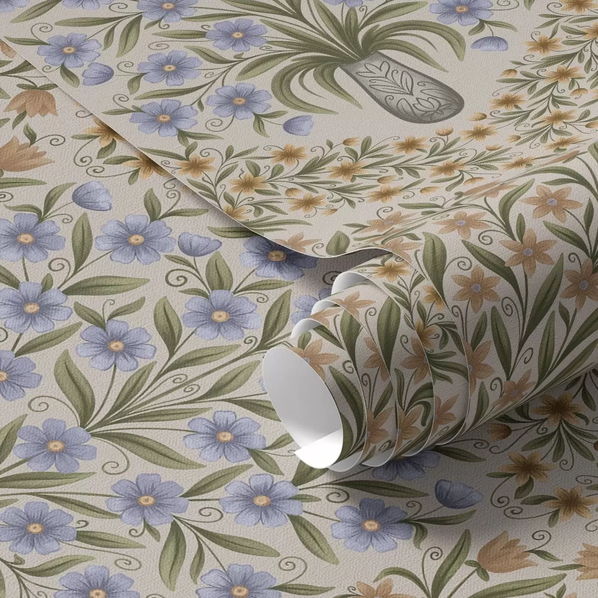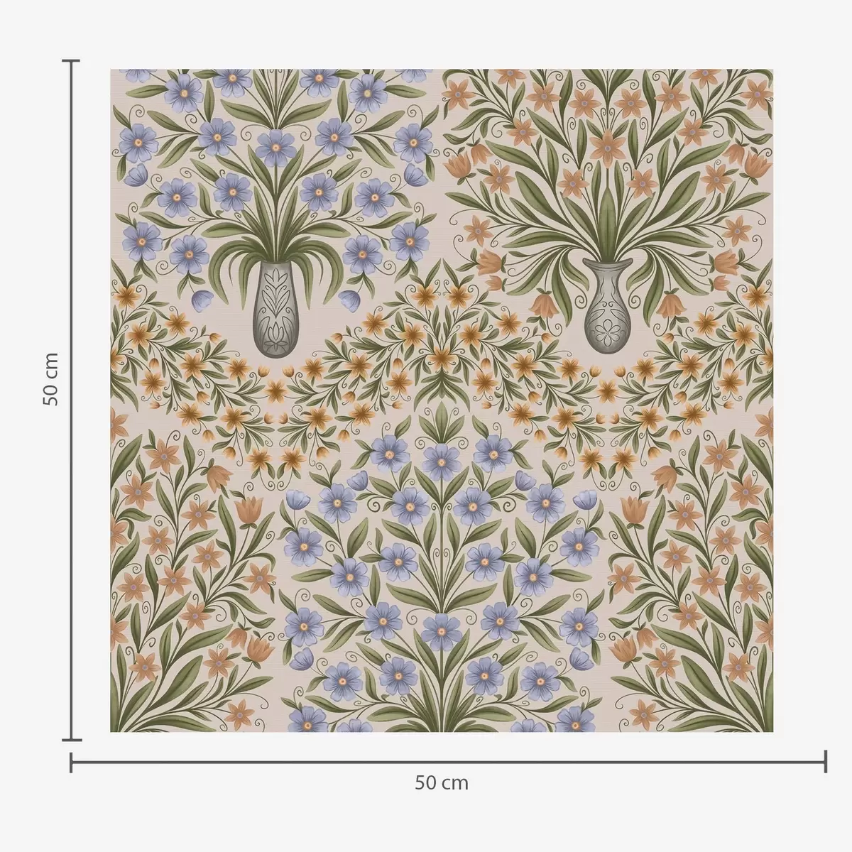 Papiers peints Vases alternés et fleurs bleues dans des tons sauge et rose pâle Nr. a00901