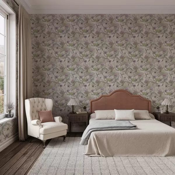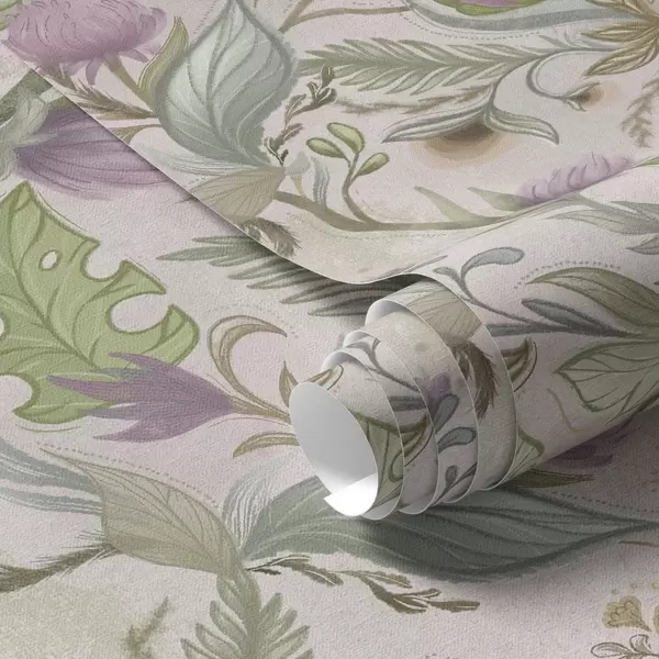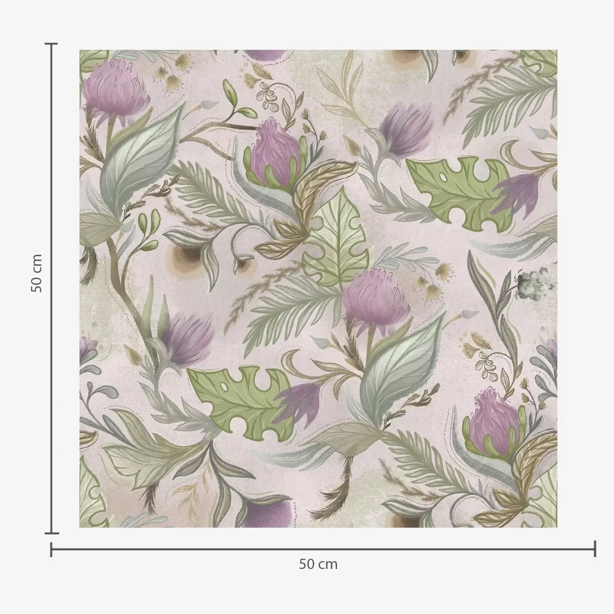 Papiers peints Fleurs sauvages lilas et feuilles sur fond poudré Nr. a00930v3