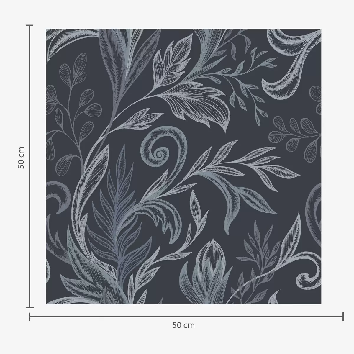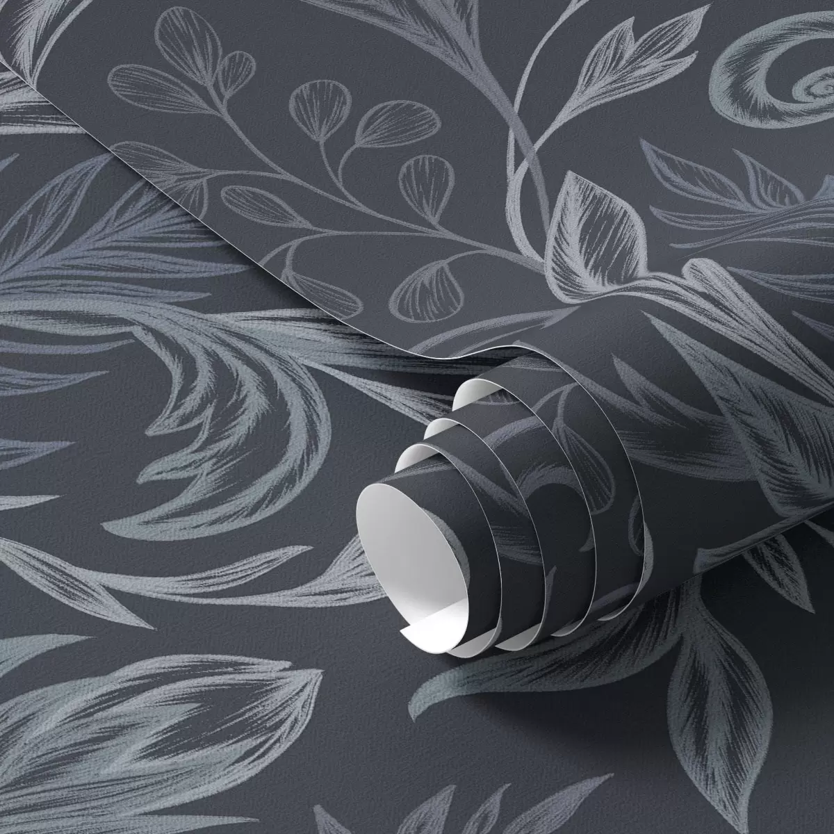 Papiers peints Feuilles recourbées bleu indigo foncé avec ombrage dessiné à la main Nr. a00935