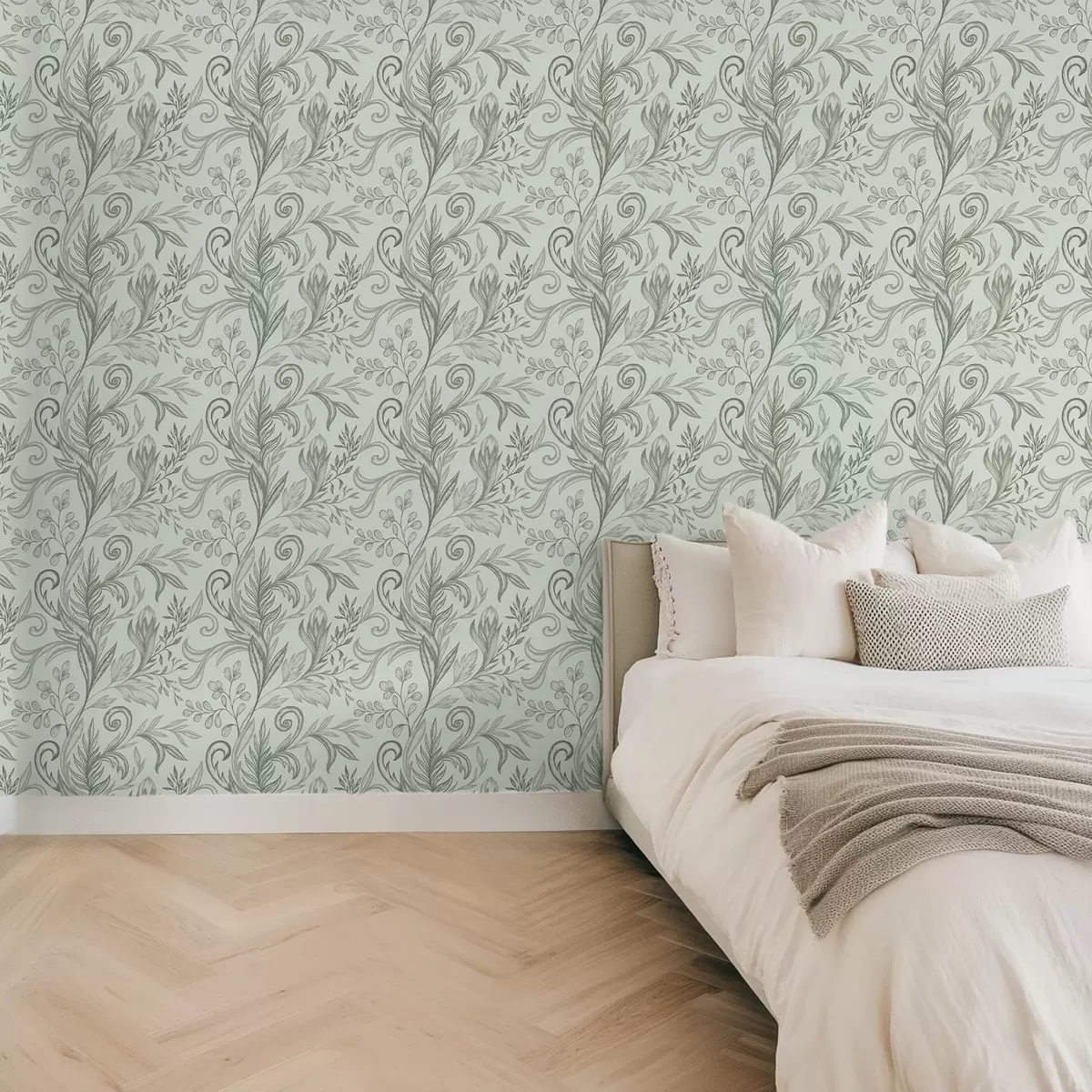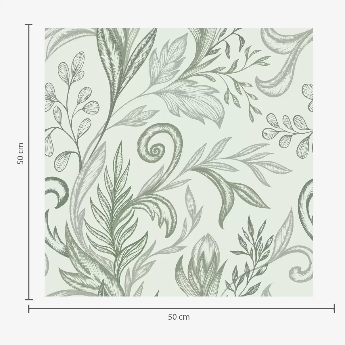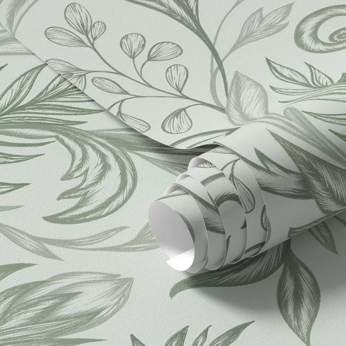 Papiers peints Feuilles de menthe tendres et recourbées, aux délicates lignes gris-vert Nr. a00935v3