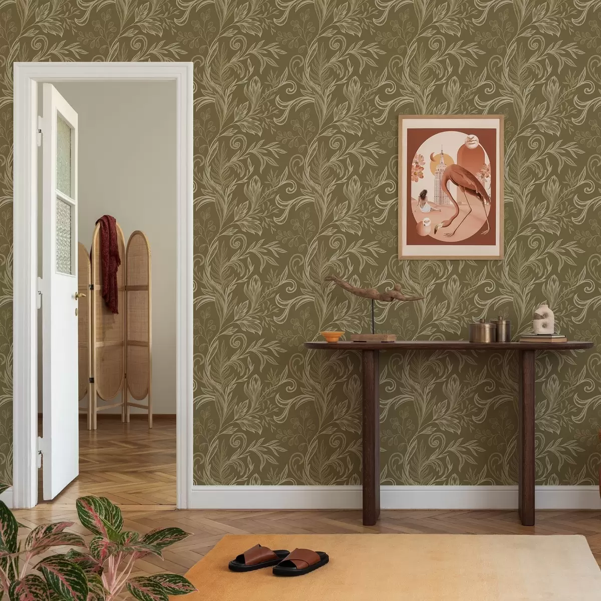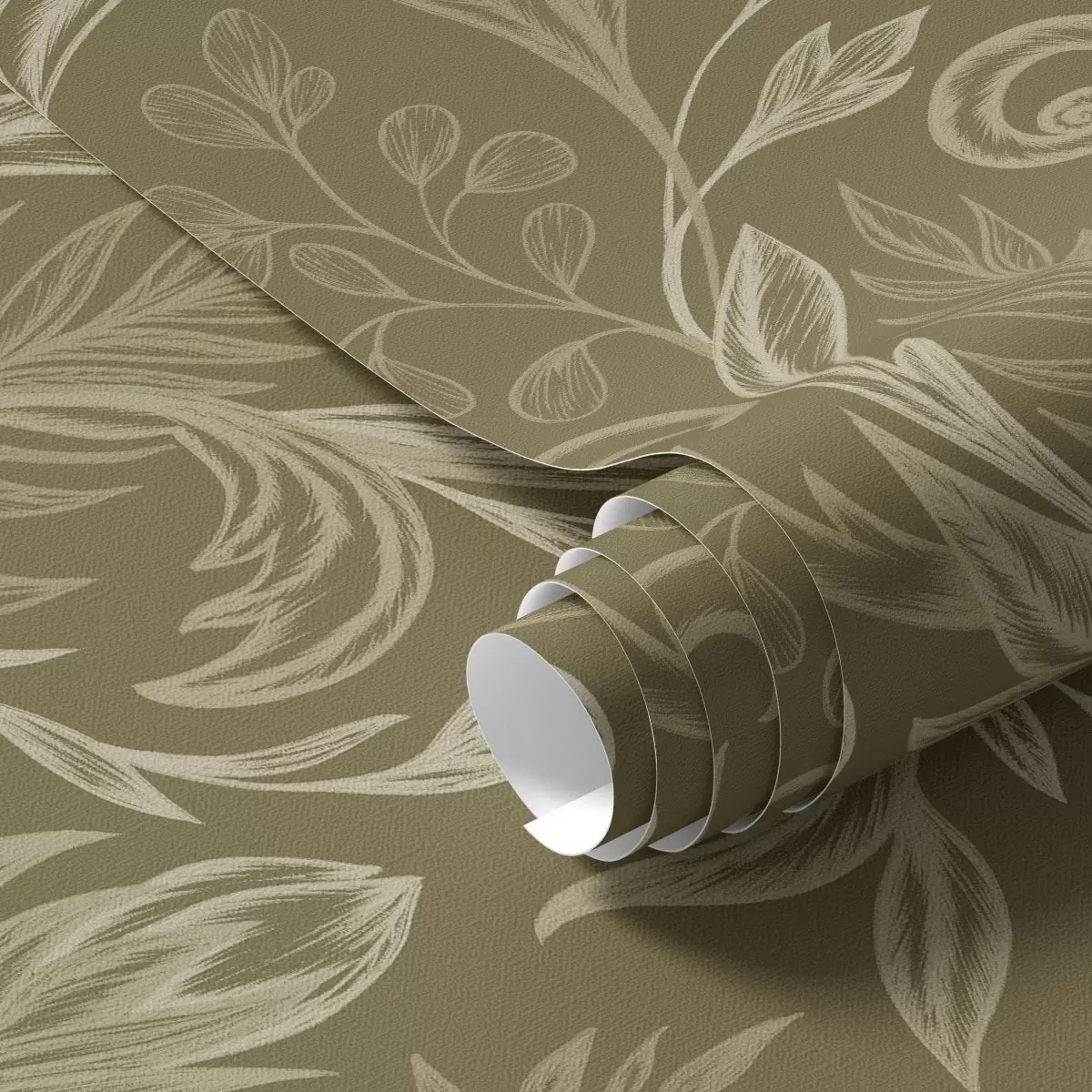 Papiers peints Feuilles bouclées couleur kaki chaud avec des accents crème clair Nr. a00935v4