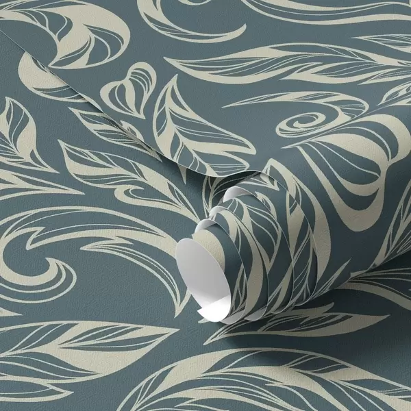 Papiers peints Motif feuillu composé de lignes claires sur fond bleu-gris Nr. a00940