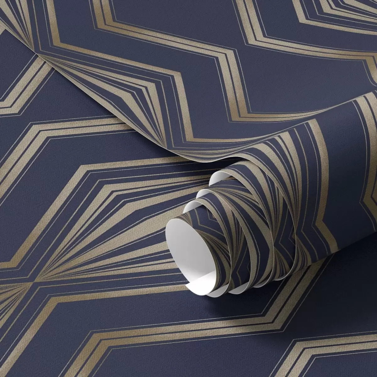 Papiers peints Fond bleu foncé avec des losanges géométriques et des zigzags Nr. a00974v2