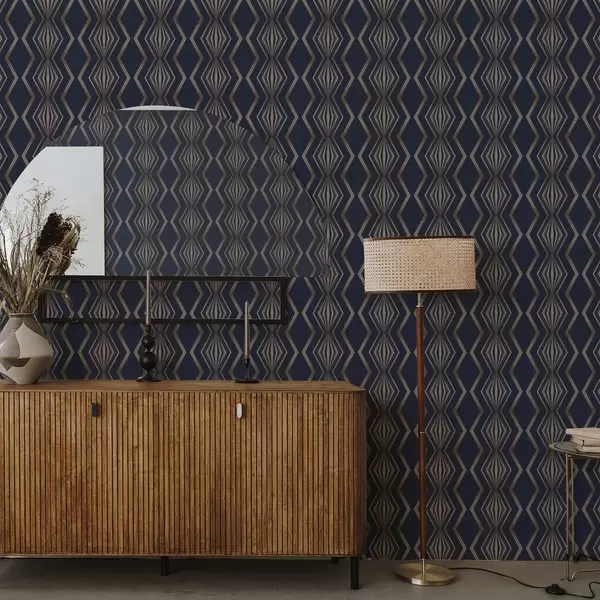 Papiers peints Fond bleu foncé avec des losanges géométriques et des zigzags Nr. a00974v2