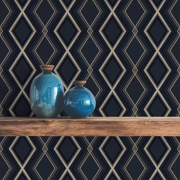 Papiers peints Grille en losanges bleu foncé avec de fines lignes claires Nr. a00975