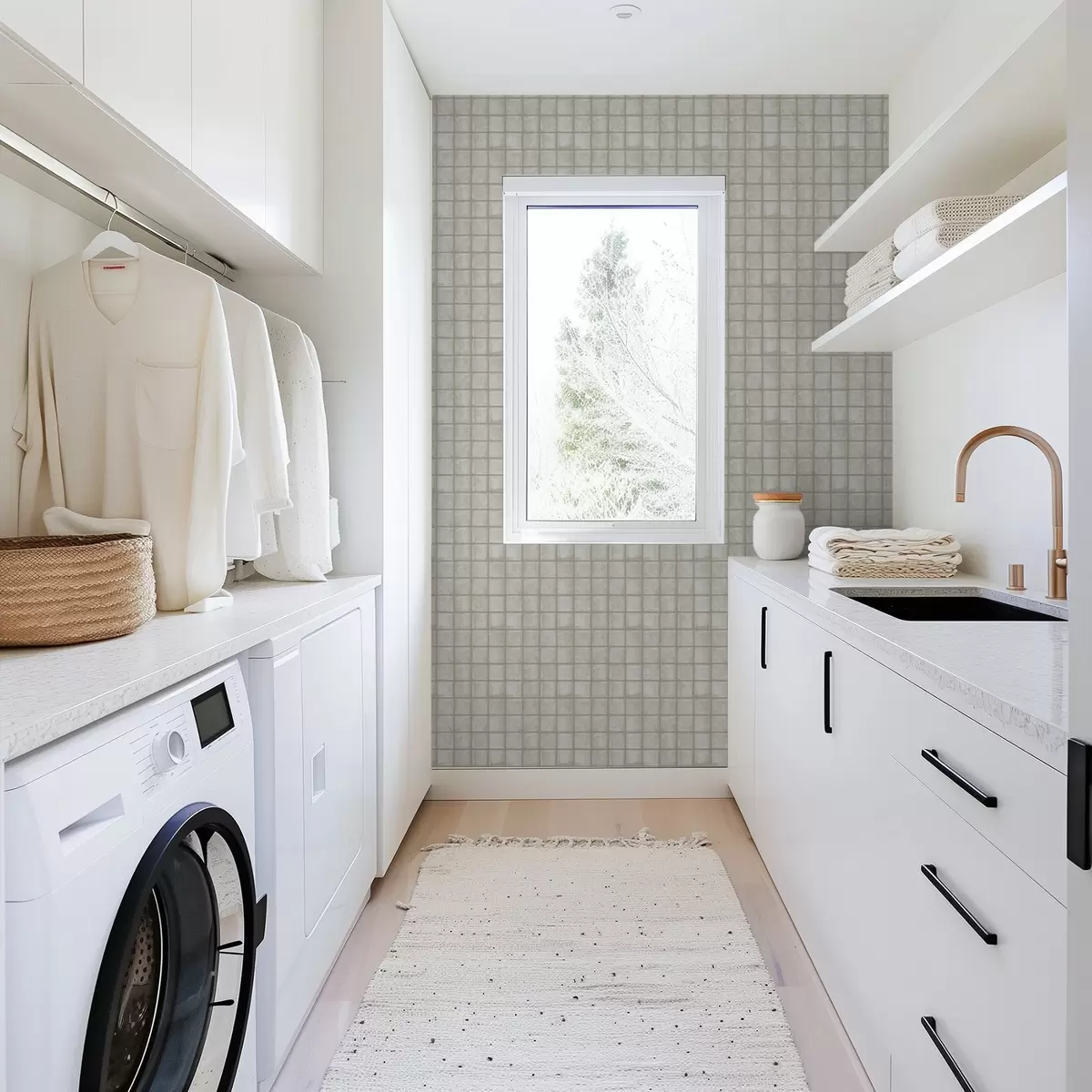 Papiers peints Imitation de carreaux carrés dans une palette douce gris-vert Nr. a00988