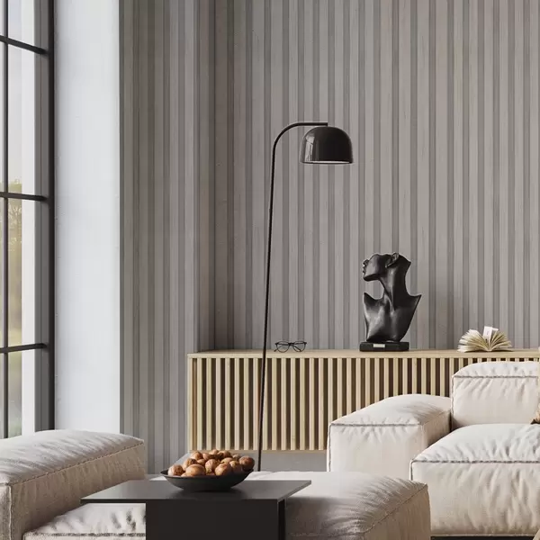 Papiers peints Lattes en bois clair avec rayures grises douces Nr. a00991v1