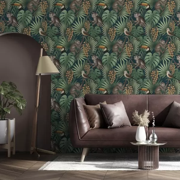 Papiers peints Singes et oiseaux tropicaux dans la végétation dense de la jungle Nr. a01037