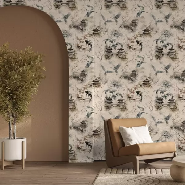 Papiers peints Temples japonais, carpes koï et grues sur un fond doux Nr. a01040