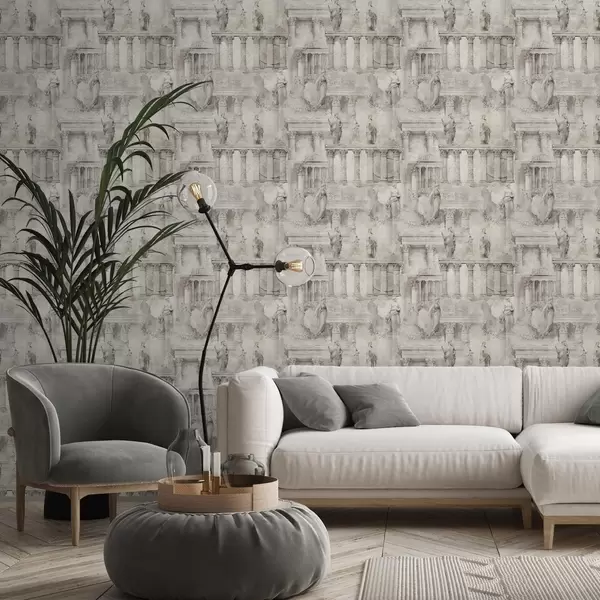 Papiers peints Statues et colonnes antiques dans des tons doux beige-gris Nr. a01041