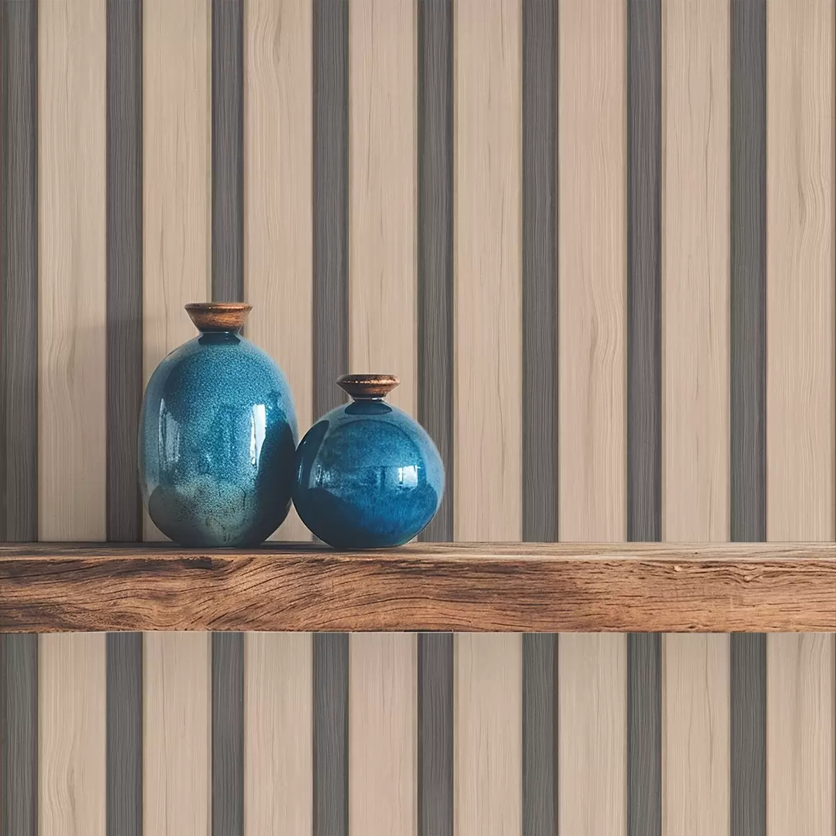 Papiers peints Planches de bois beiges avec rayures verticales foncées Nr. a01054v2
