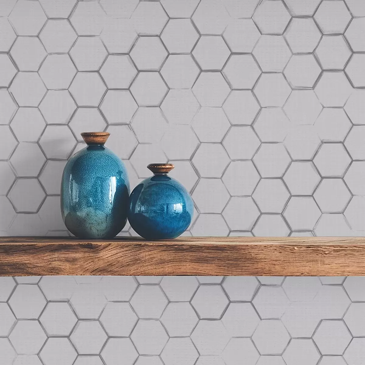 Papiers peints Fine grille hexagonale sur fond texturé gris clair Nr. a01060