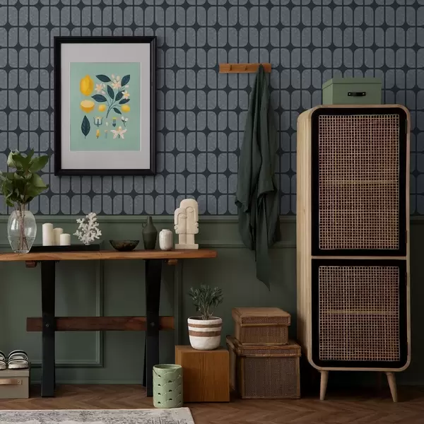 Papiers peints Fond bleu foncé avec mosaïque grise de carreaux arrondis Nr. a01068v1