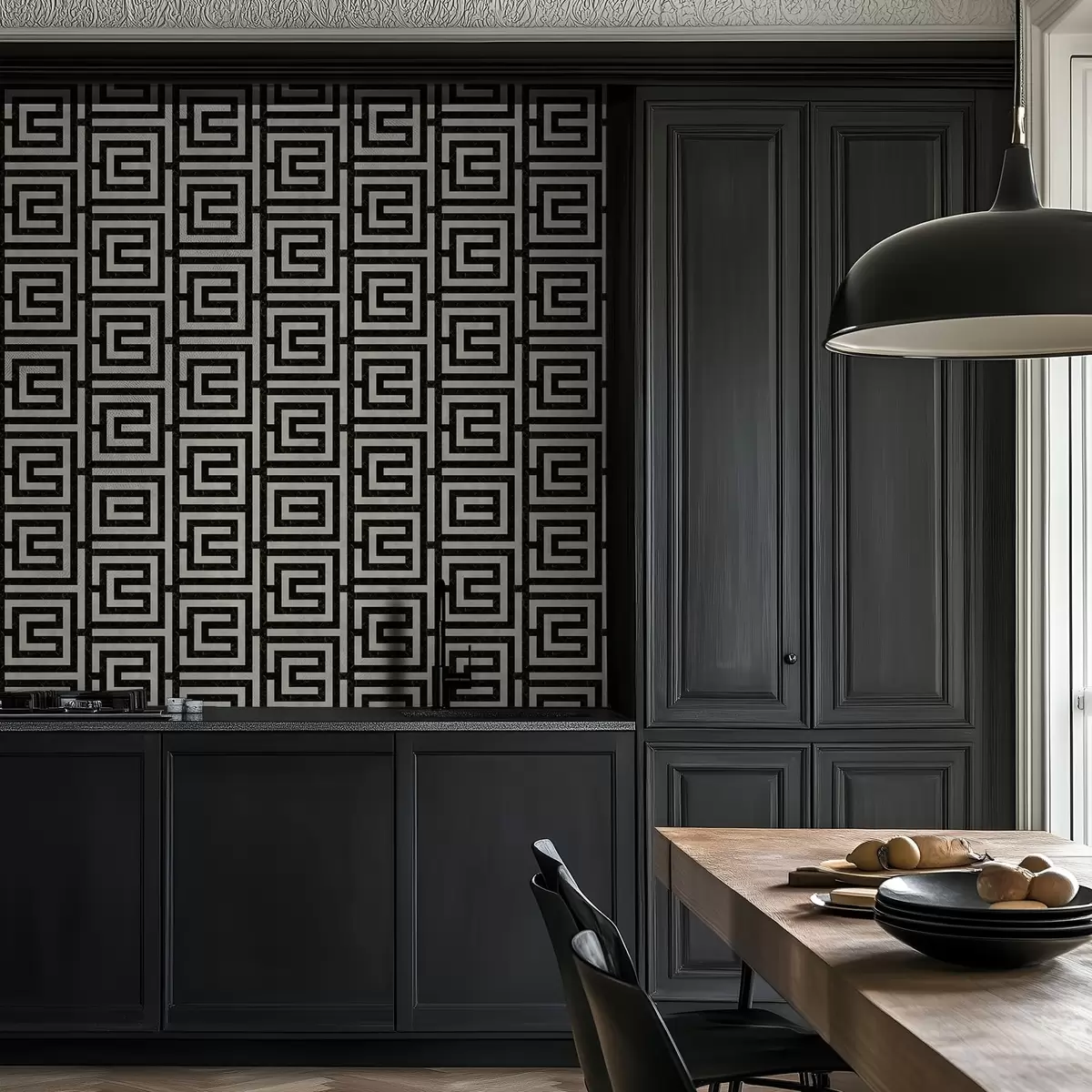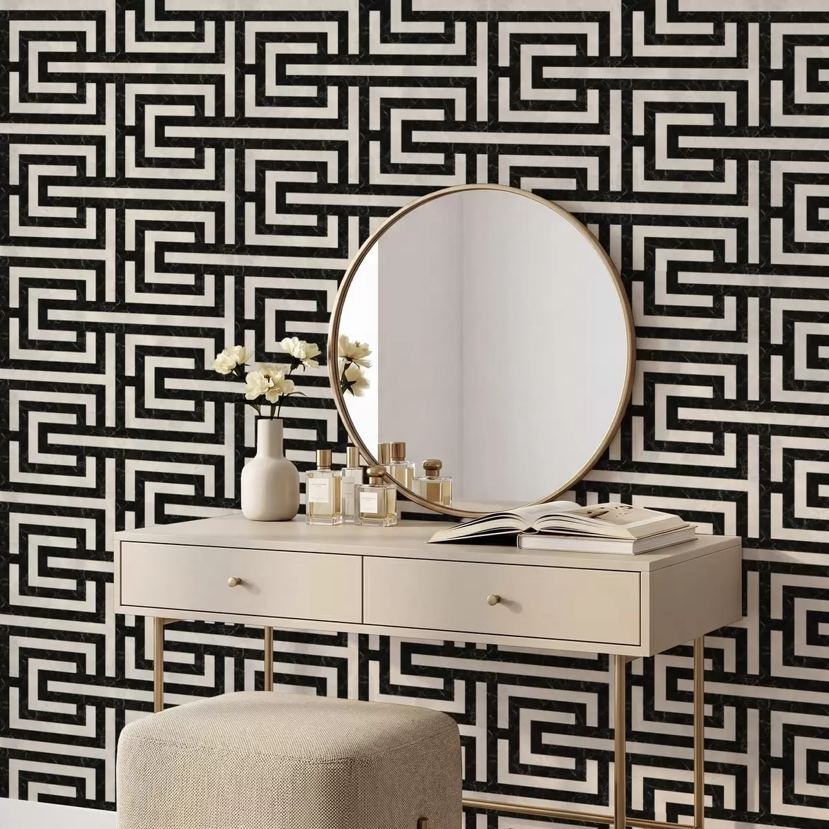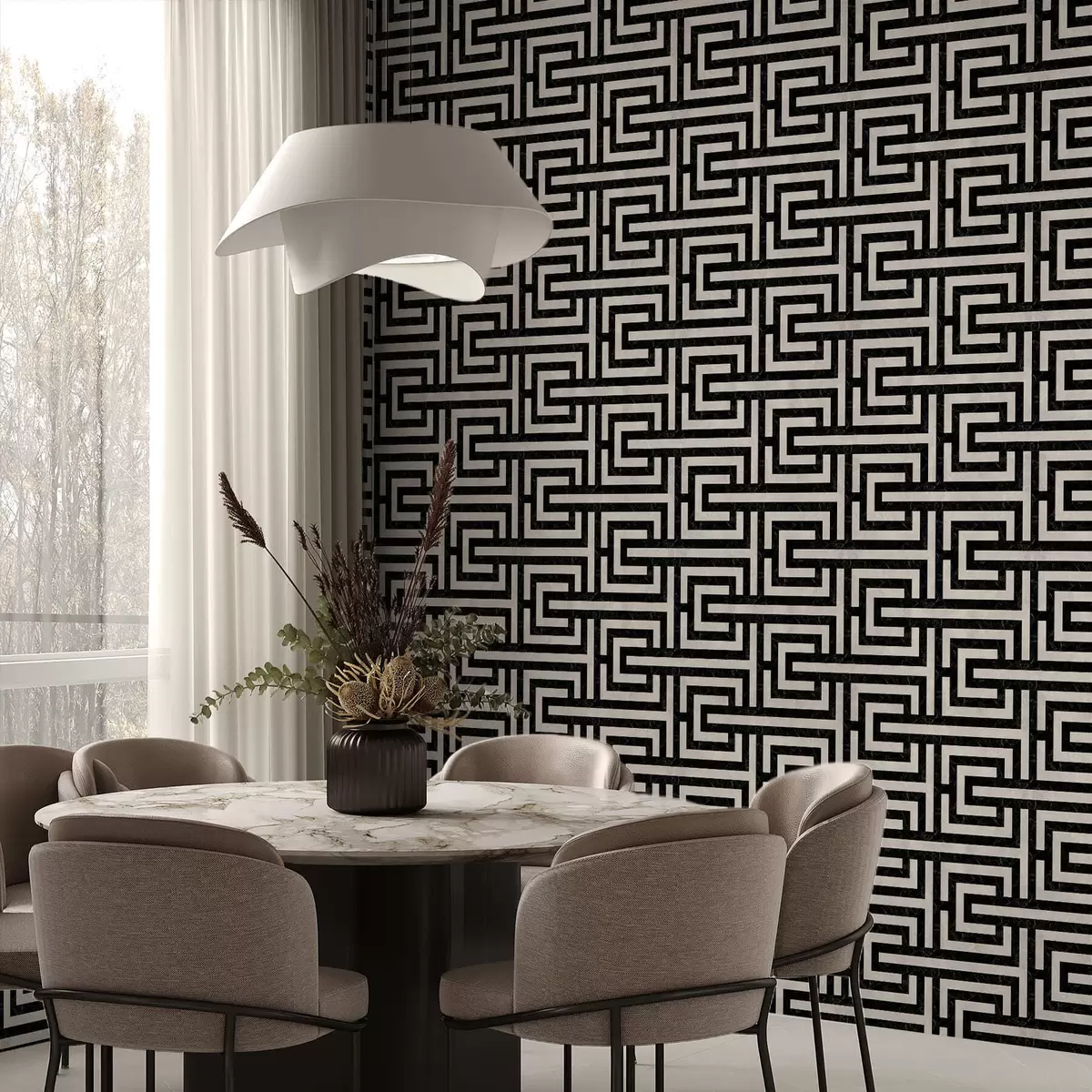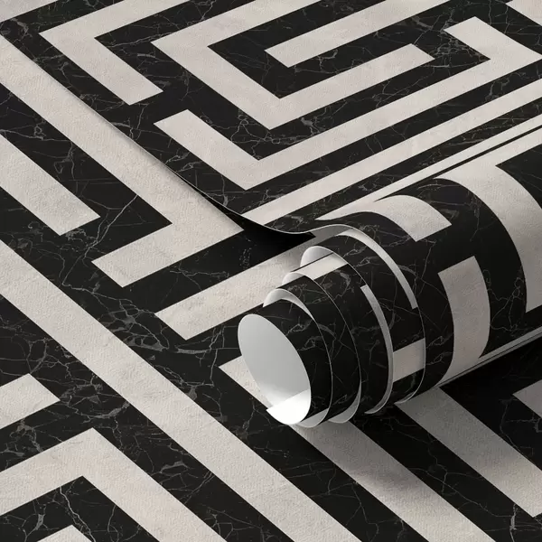 Papiers peints Motif géométrique noir et blanc en forme de labyrinthe Nr. a01073