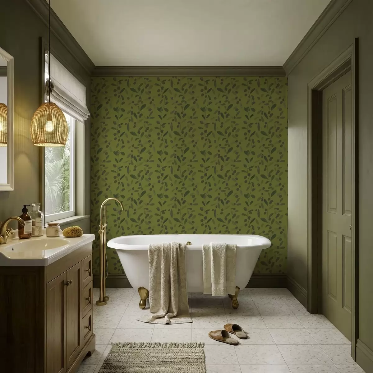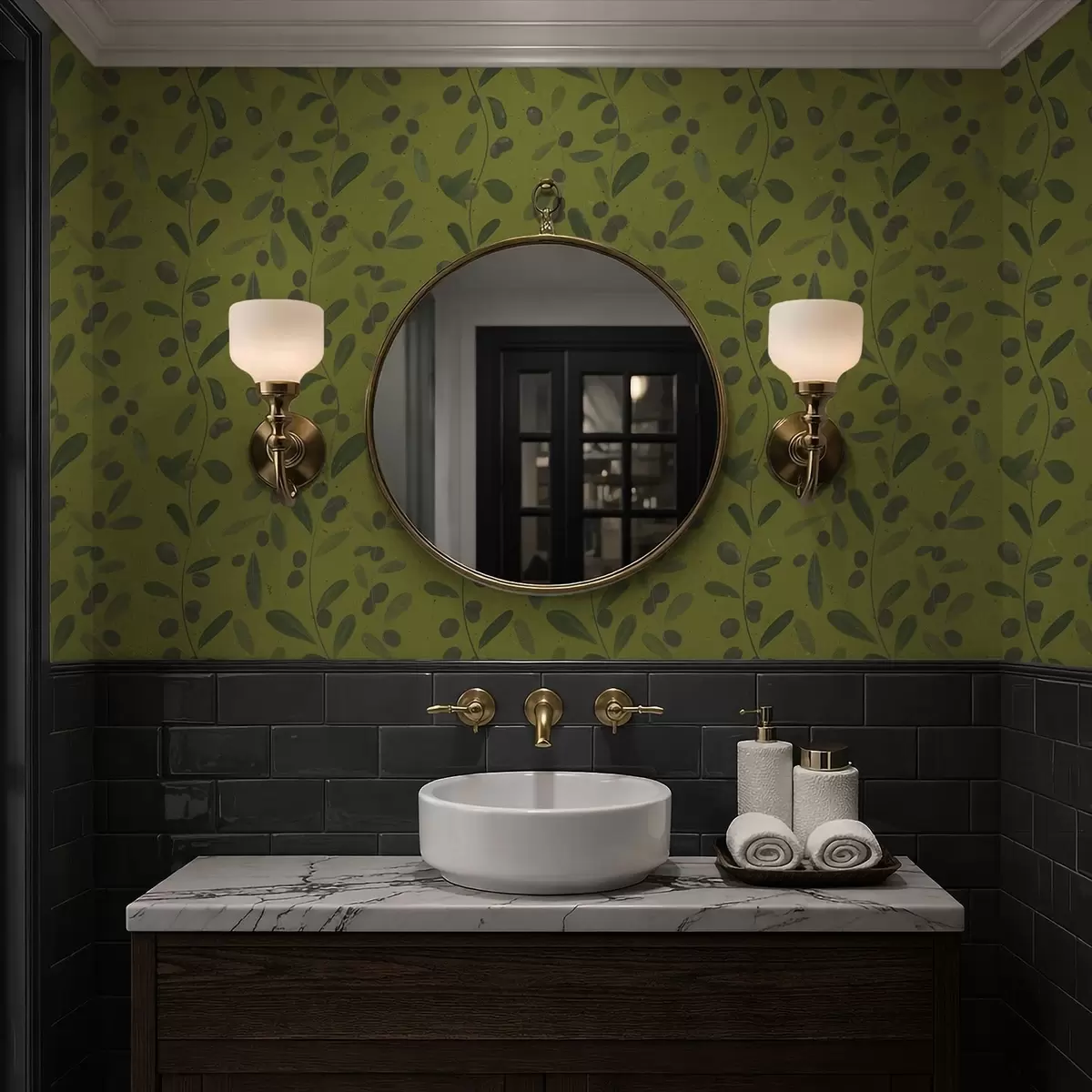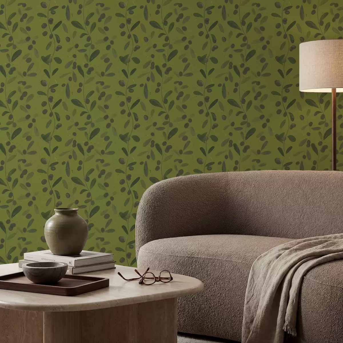 Papiers peints Branches vertes avec feuilles et baies sur olivier Nr. a01113