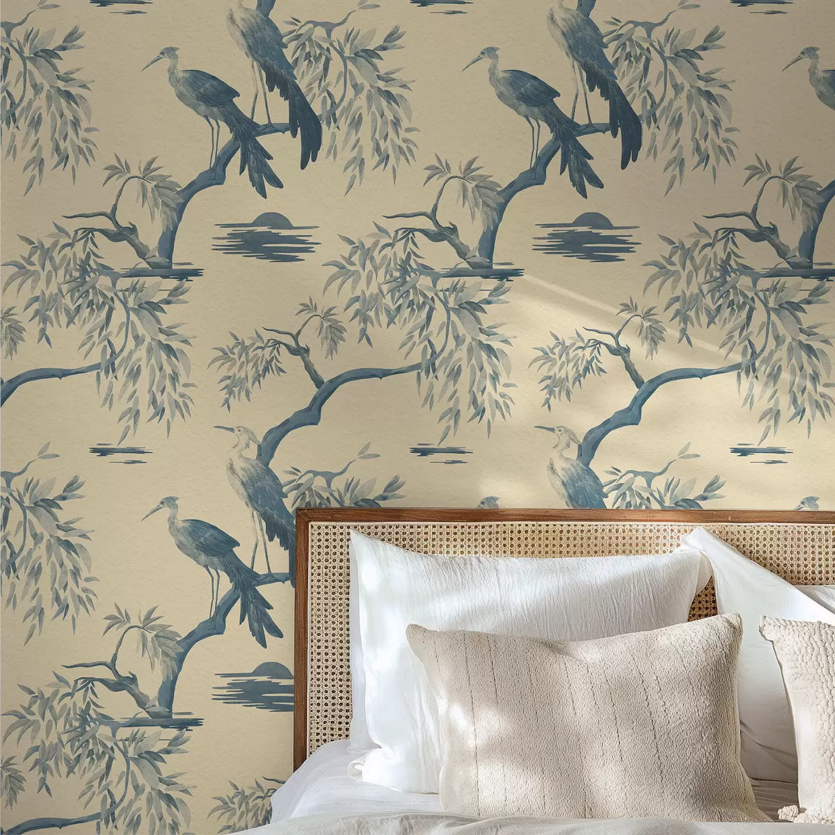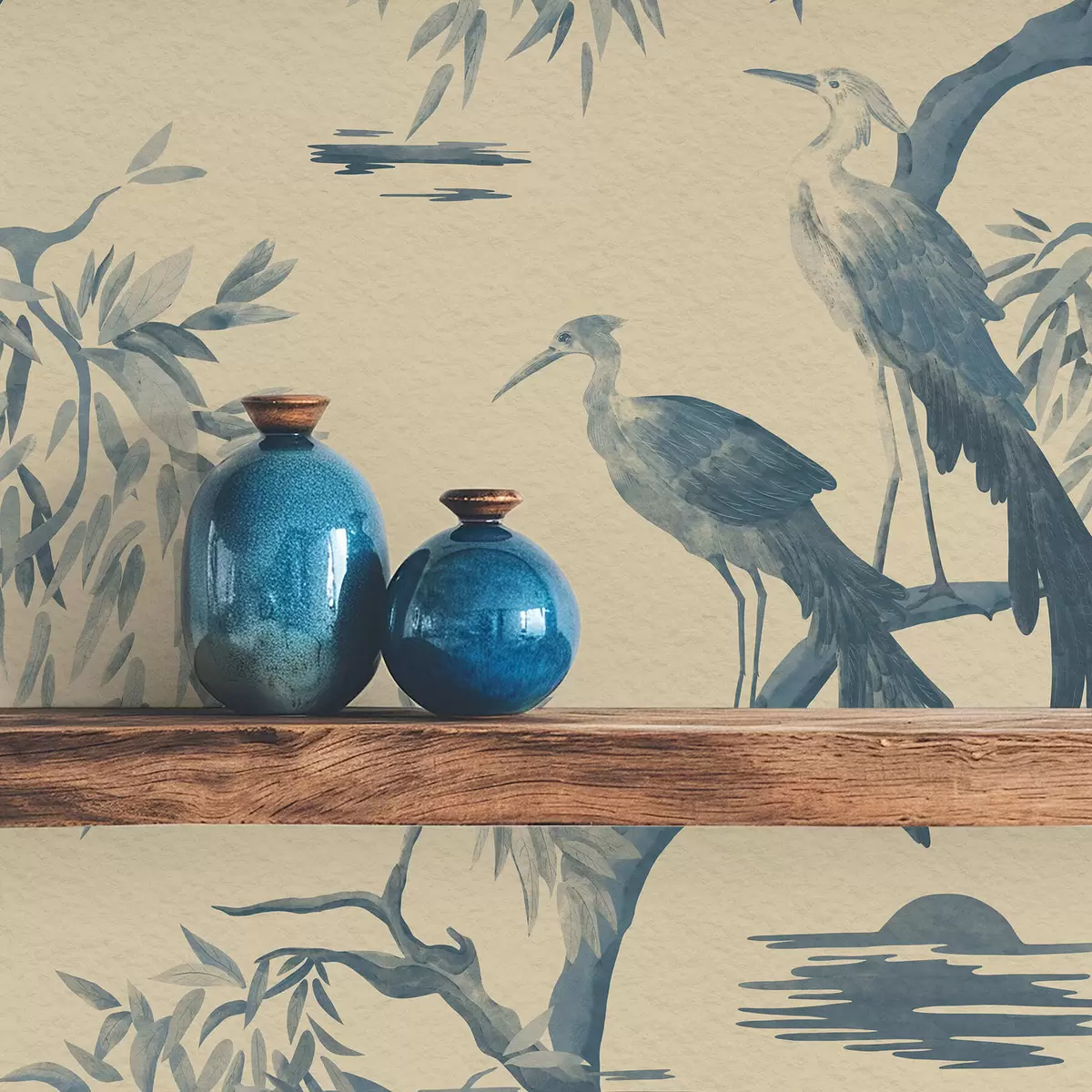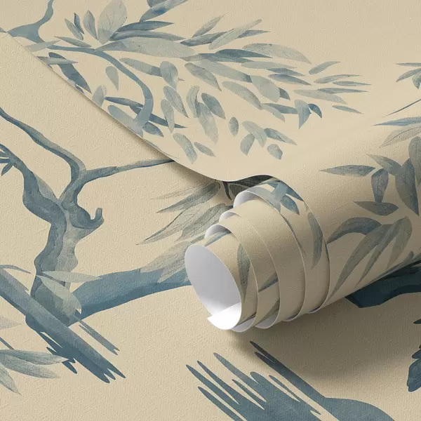 Papiers peints Oiseaux sur une branche dans des tons bleus Nr. a01116