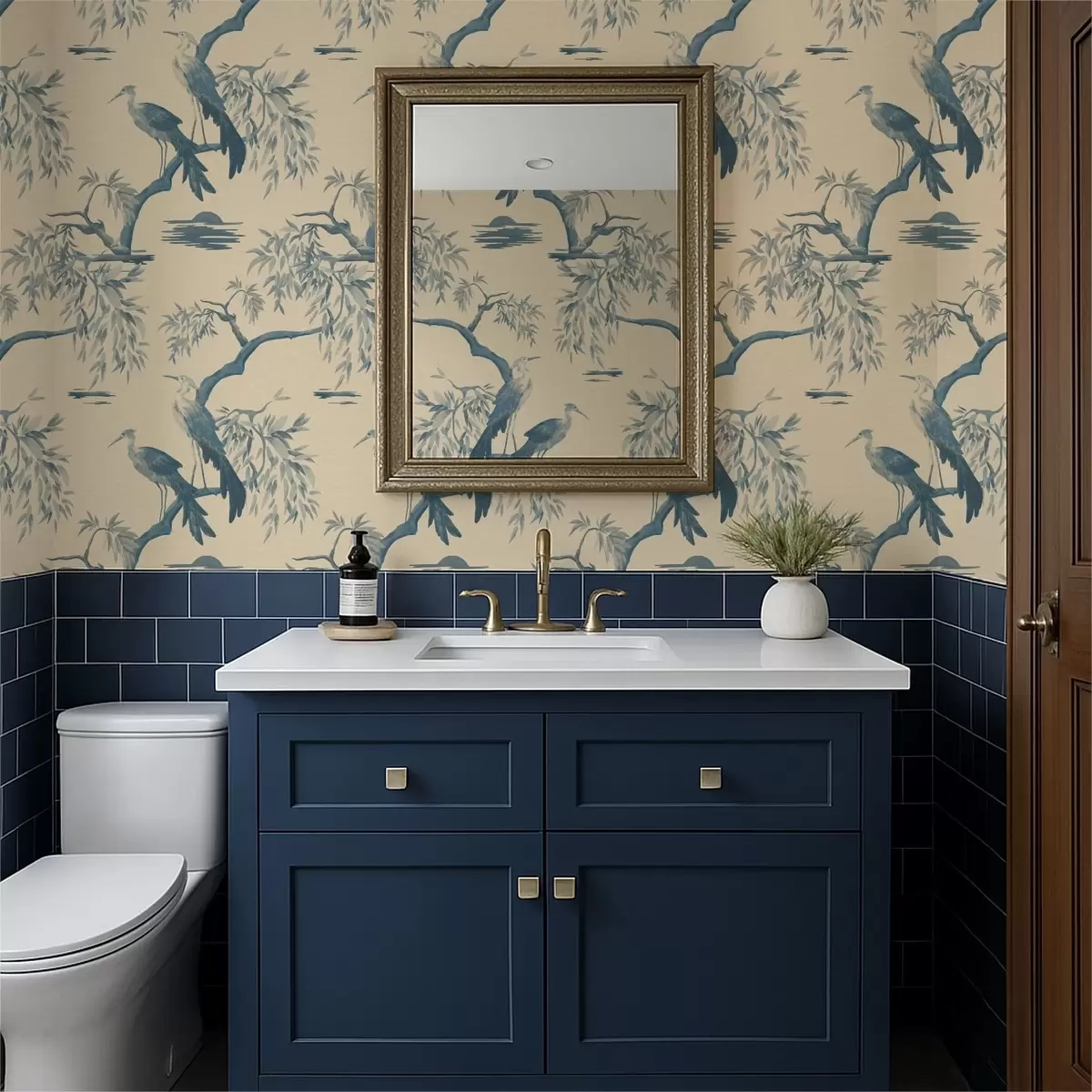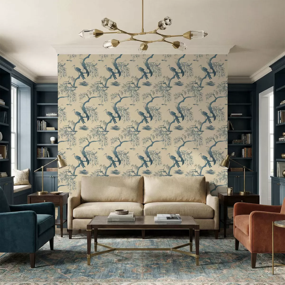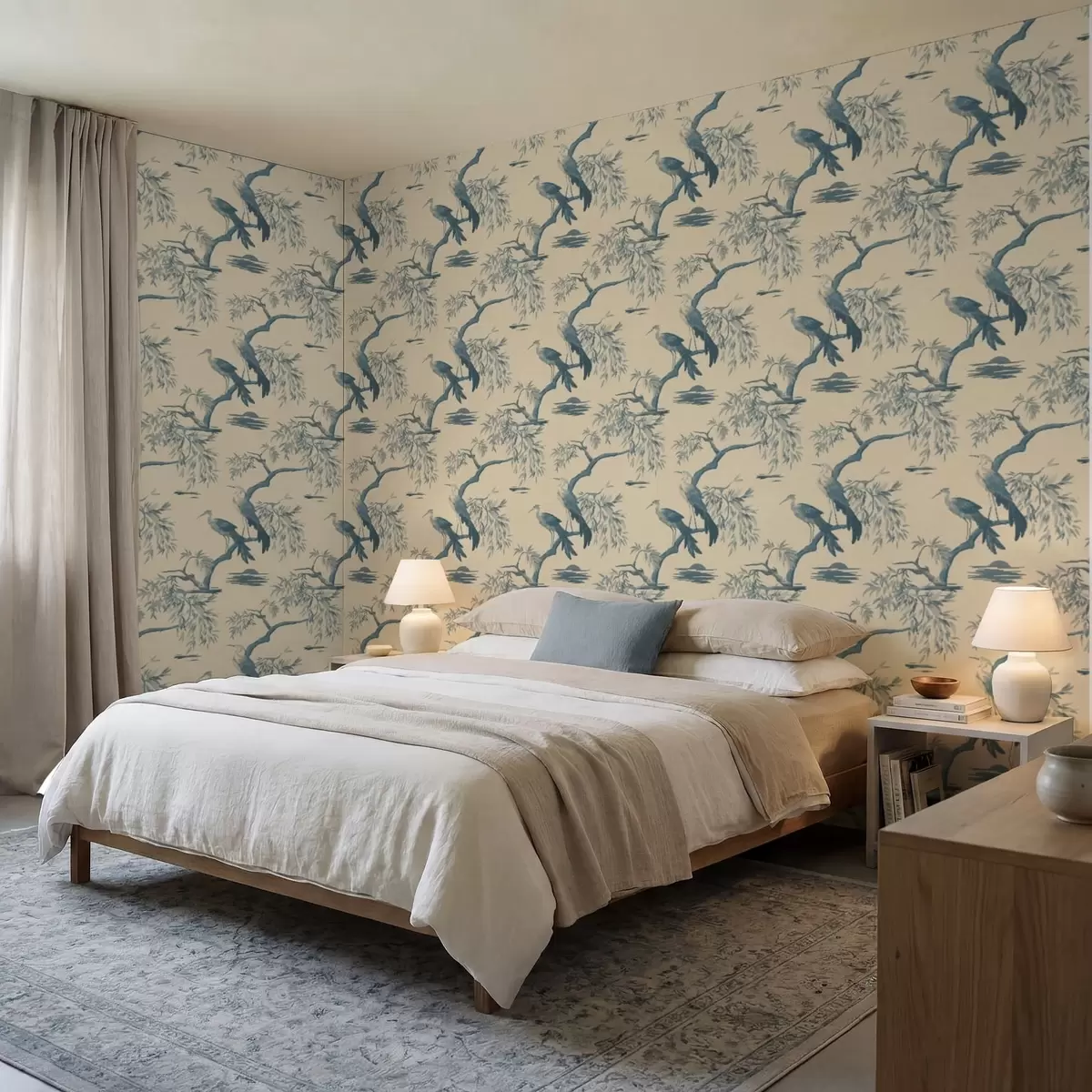 Papiers peints Oiseaux sur une branche dans des tons bleus Nr. a01116
