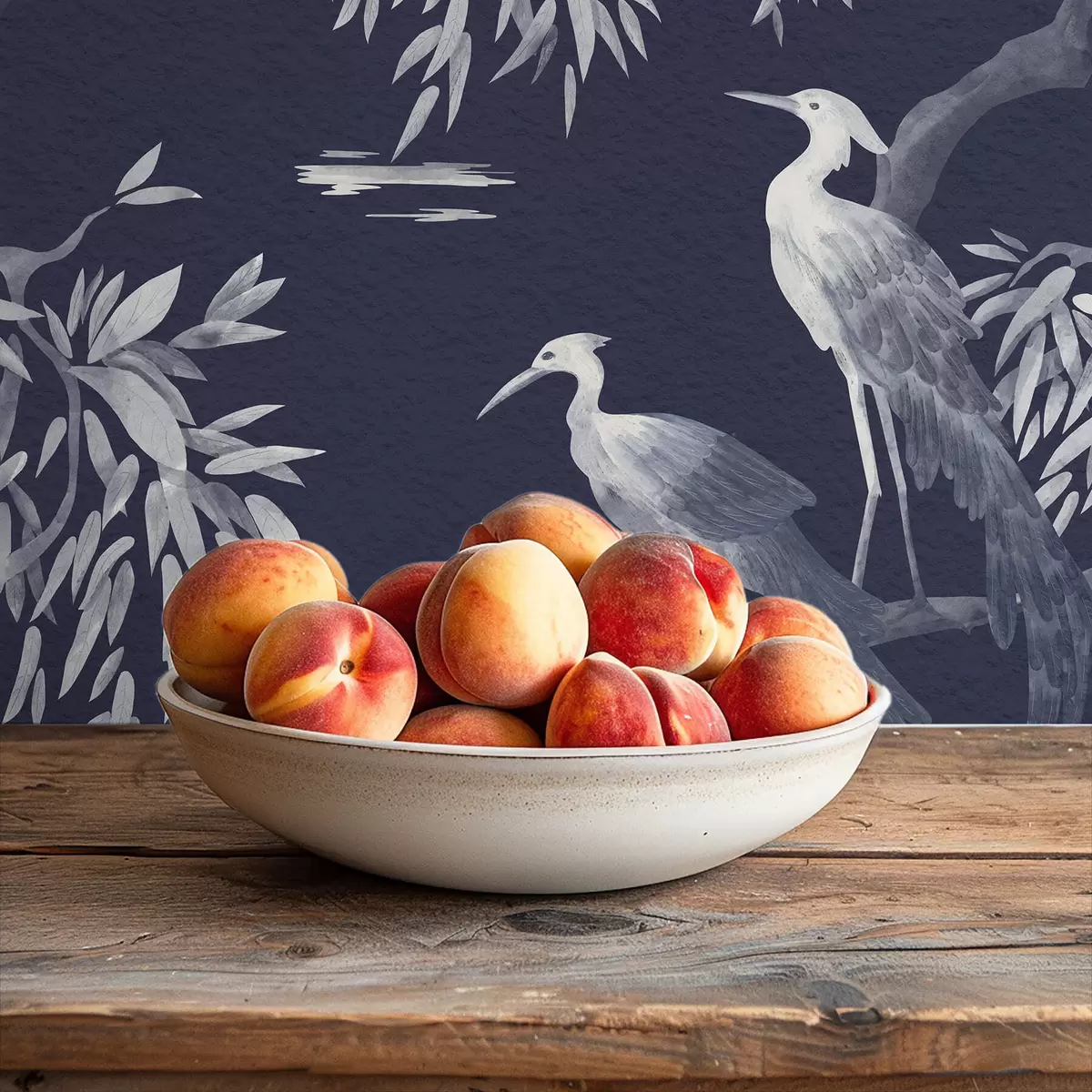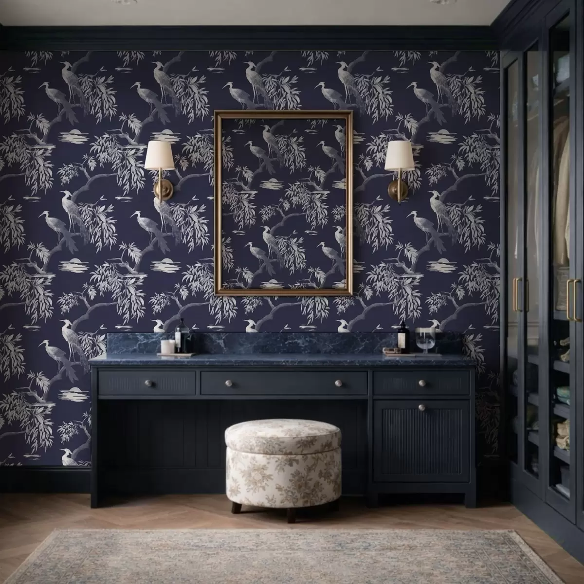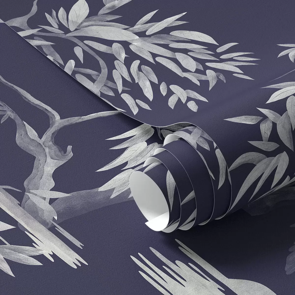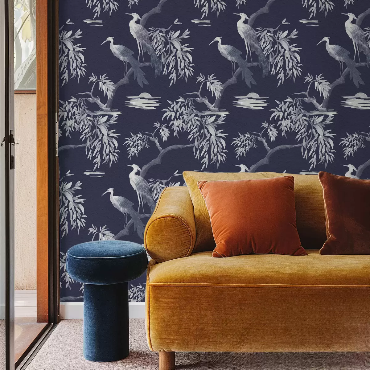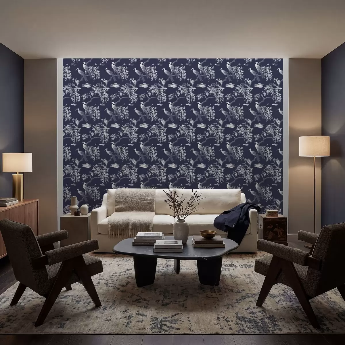 Papiers peints Oiseaux sur une branche sur fond bleu foncé Nr. a01116v1