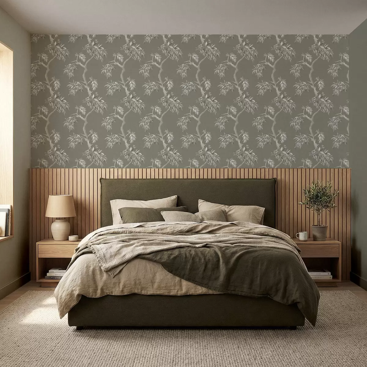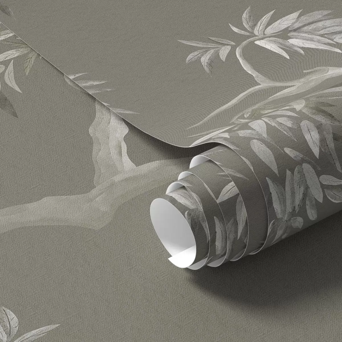 Papiers peints Branche légère avec des feuilles sur fond olive Nr. a01117v1