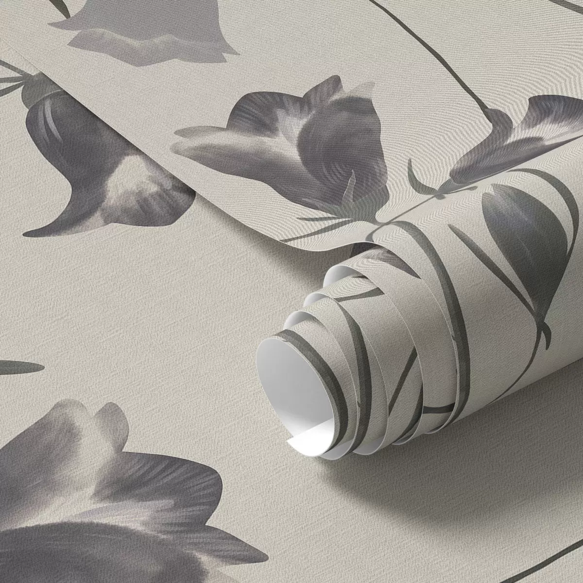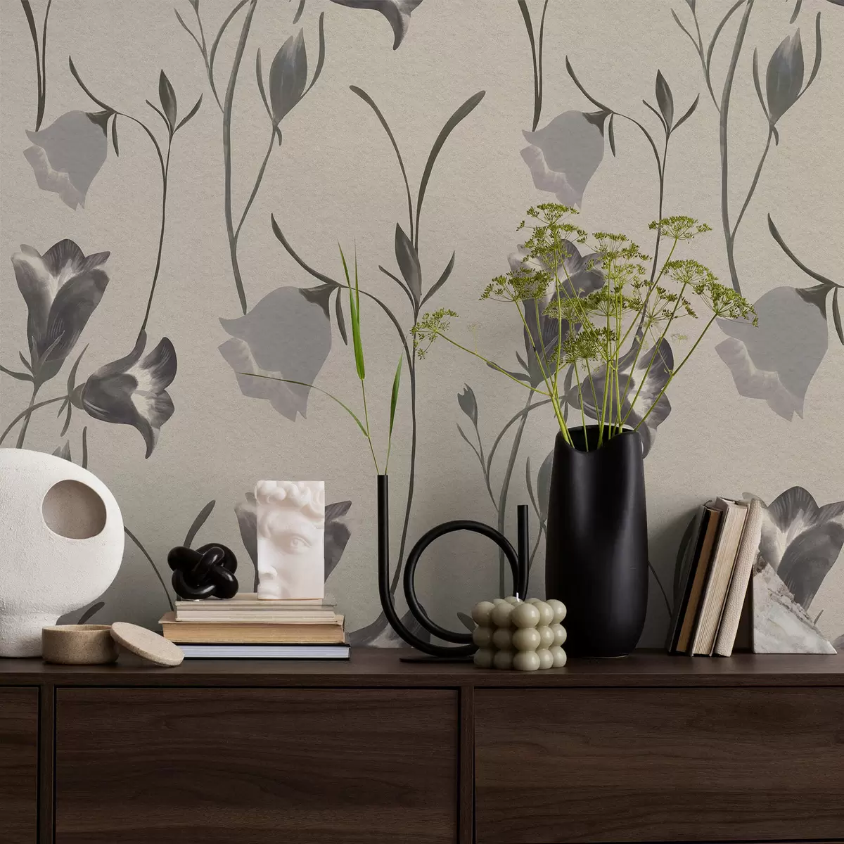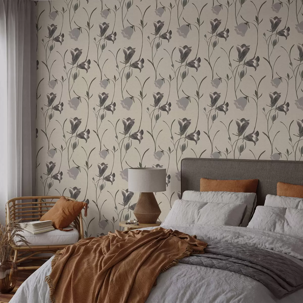 Papiers peints Fleurs grises en forme de clochettes sur fond beige clair Nr. a01119