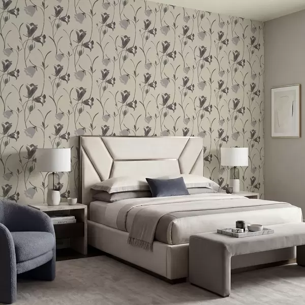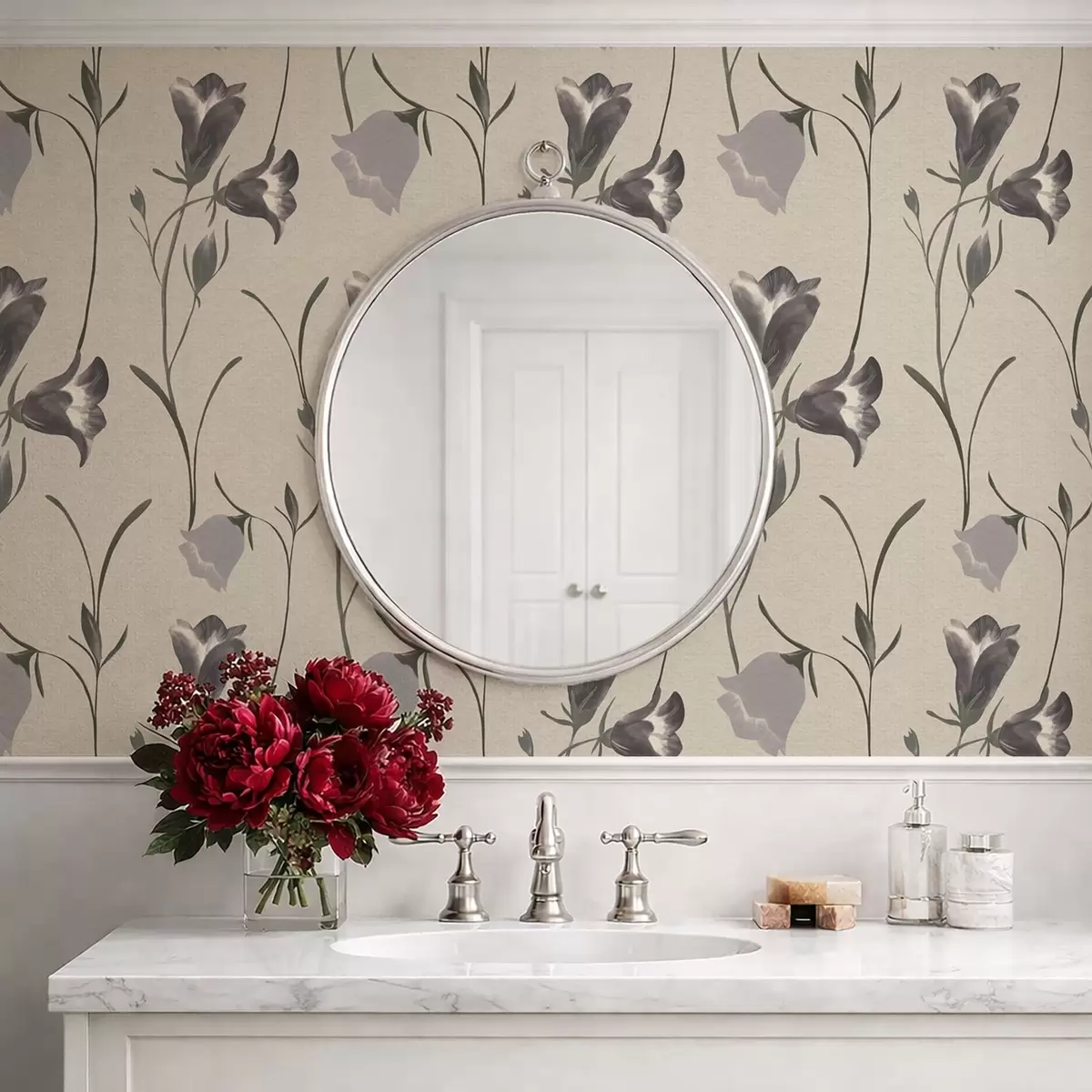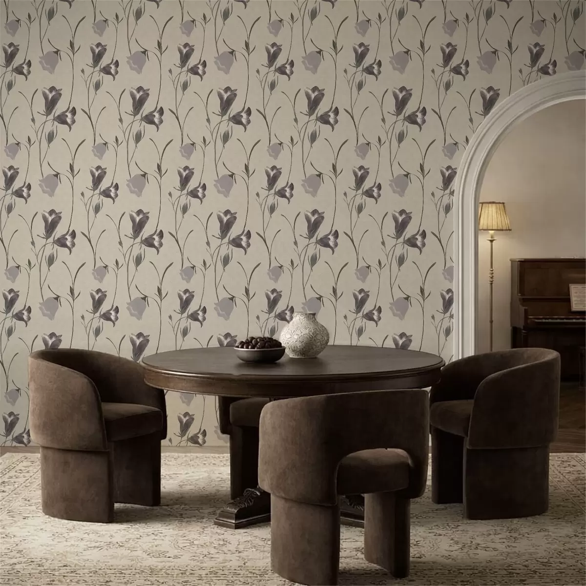 Papiers peints Fleurs grises en forme de clochettes sur fond beige clair Nr. a01119