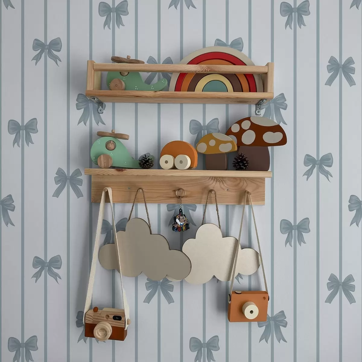 Papiers peints Des nœuds bleus sur un fond clair rayé Nr. a01162v2