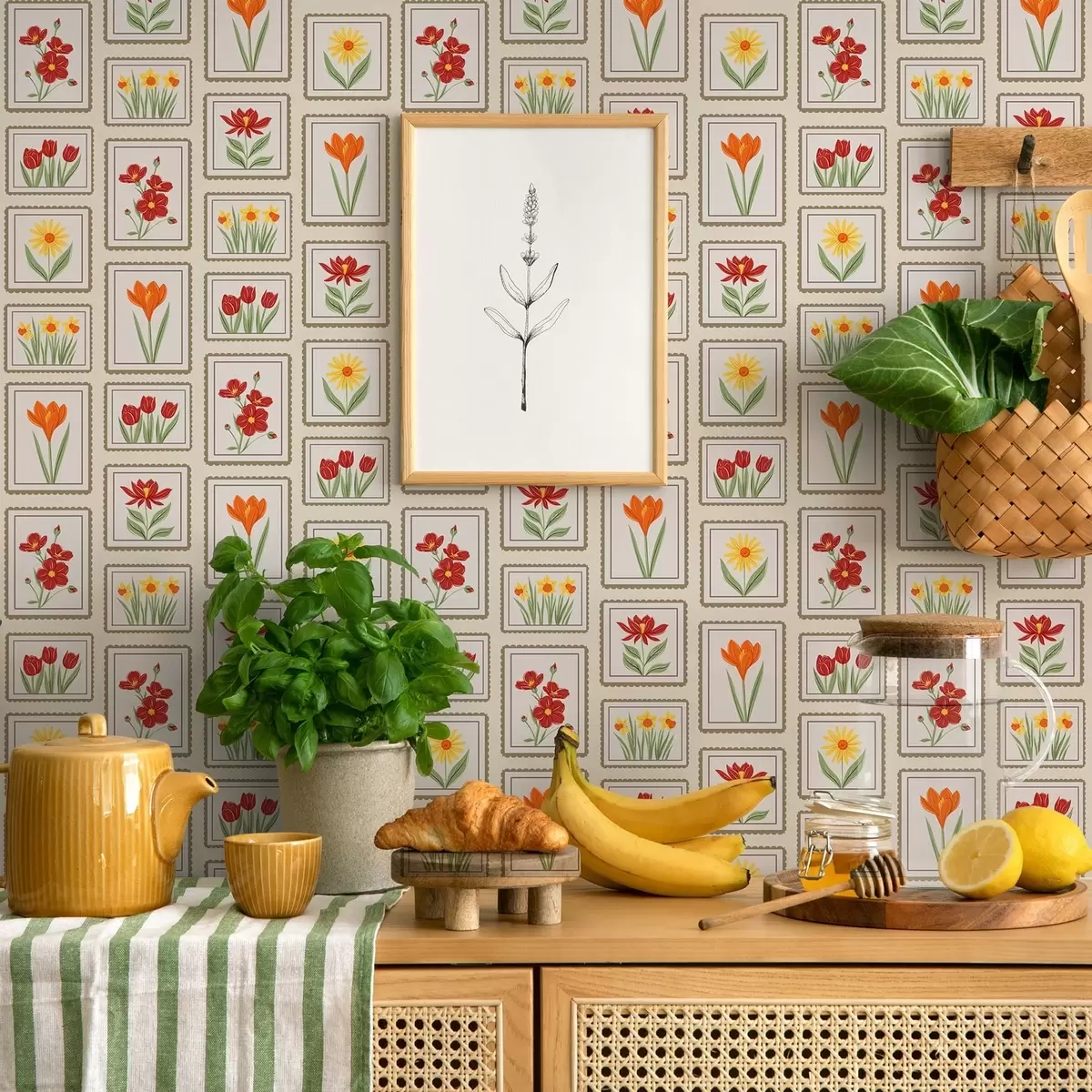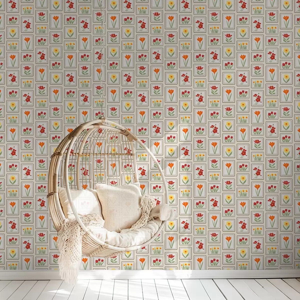 Papiers peints Illustrations florales aux couleurs vives et encadrées Nr. a01174v1