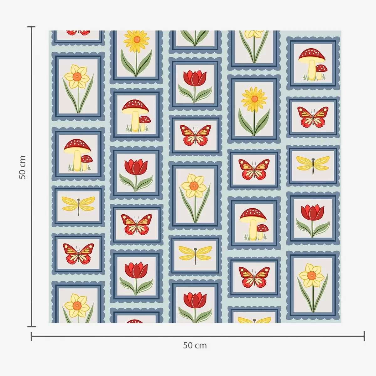Imprimé sur commande et livré en rouleaux jusqu’à 50 cm de large.