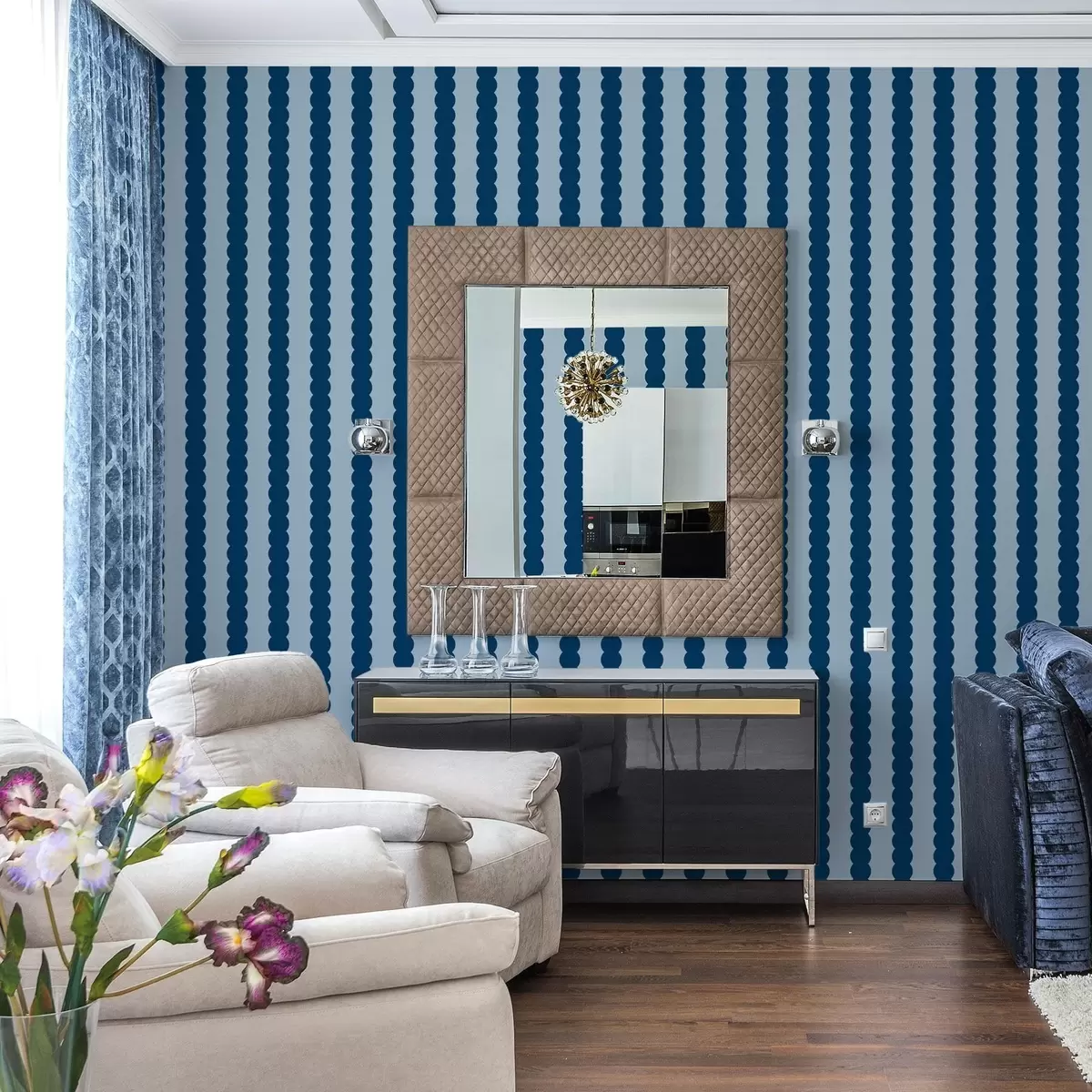 Papiers peints Rayures ondulées bleu foncé, style minimaliste Nr. a01182v3