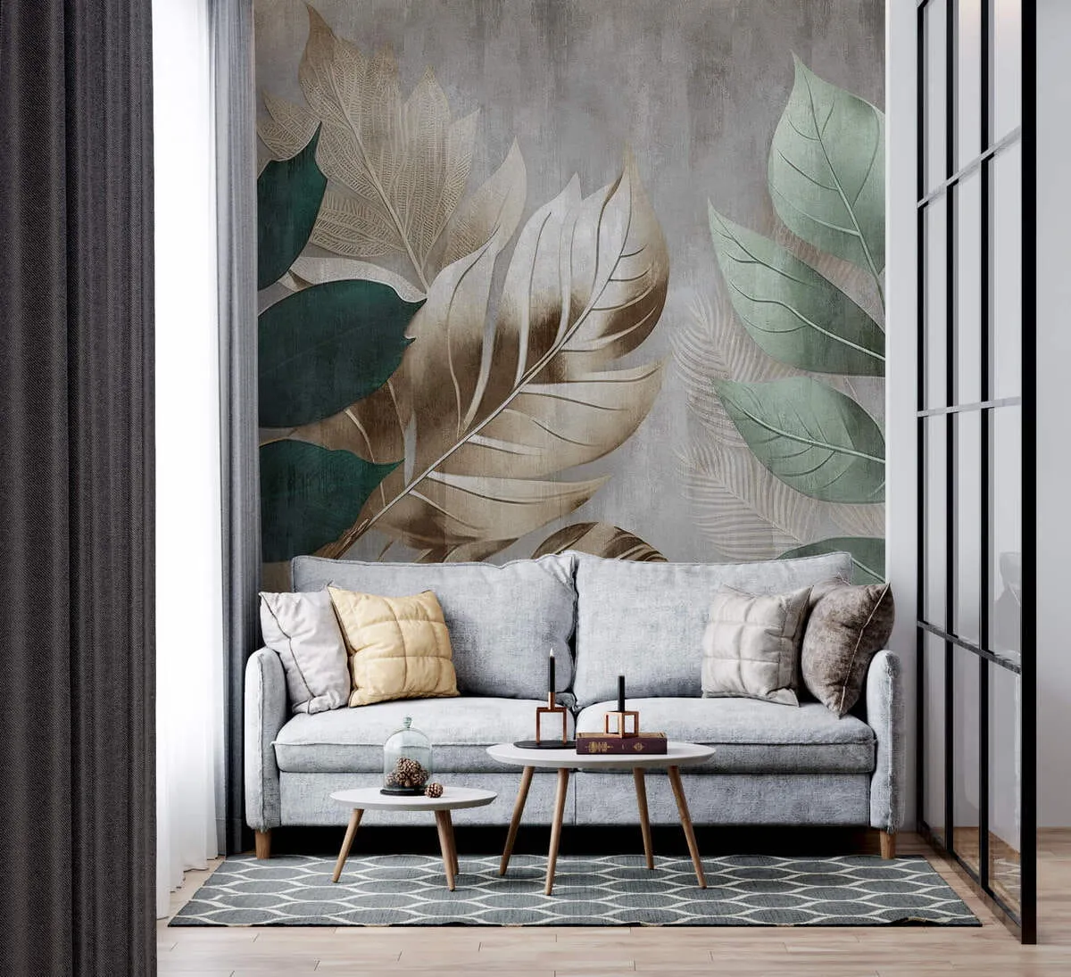 Peintures murales Feuilles sur fond texturé Nr. u94827