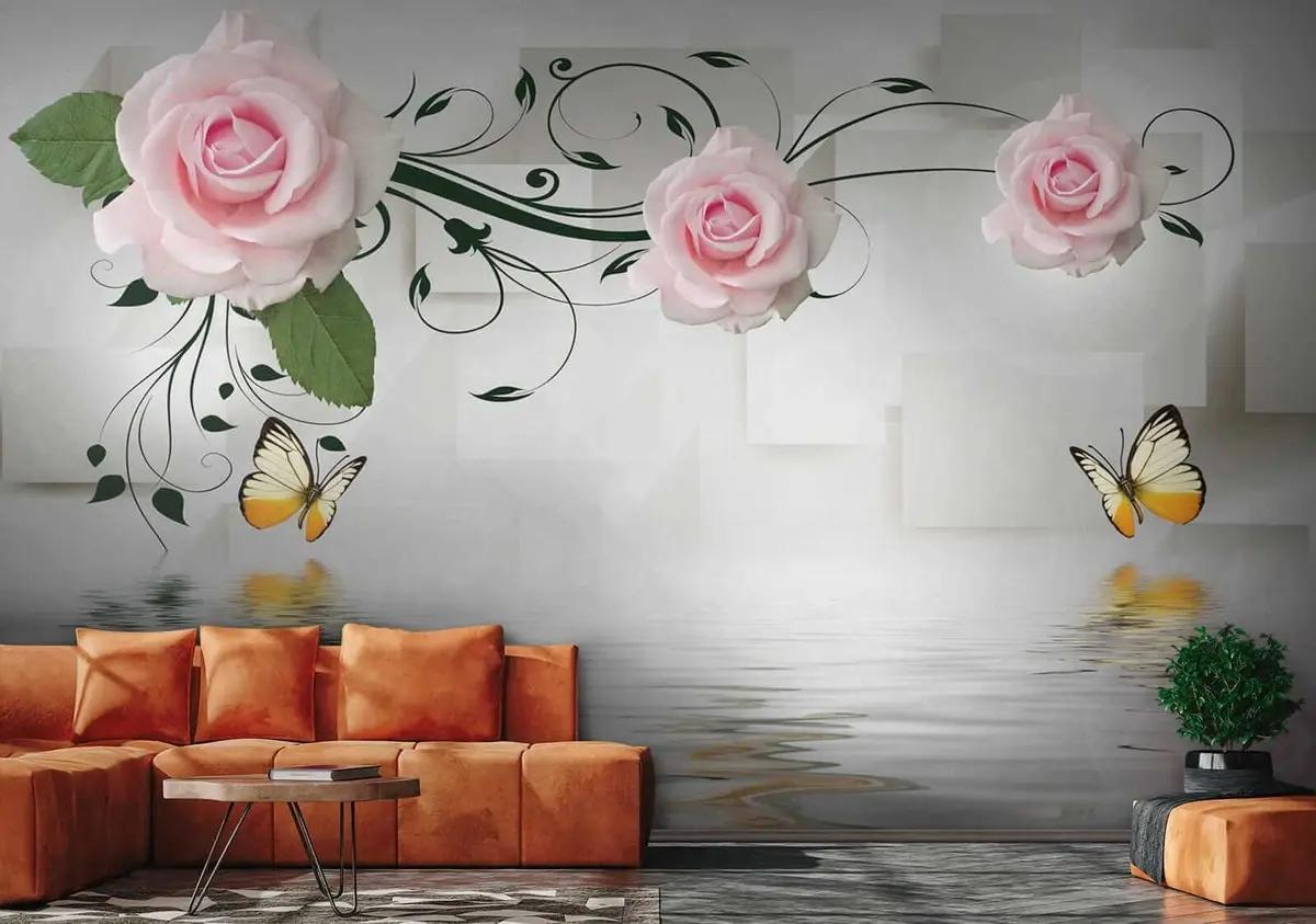 Peintures murales Roses roses avec boucles Nr. u38141