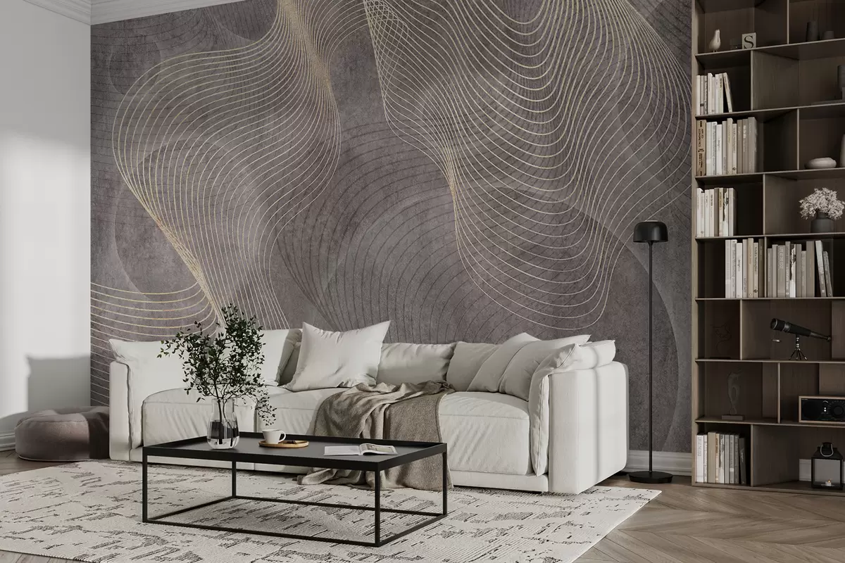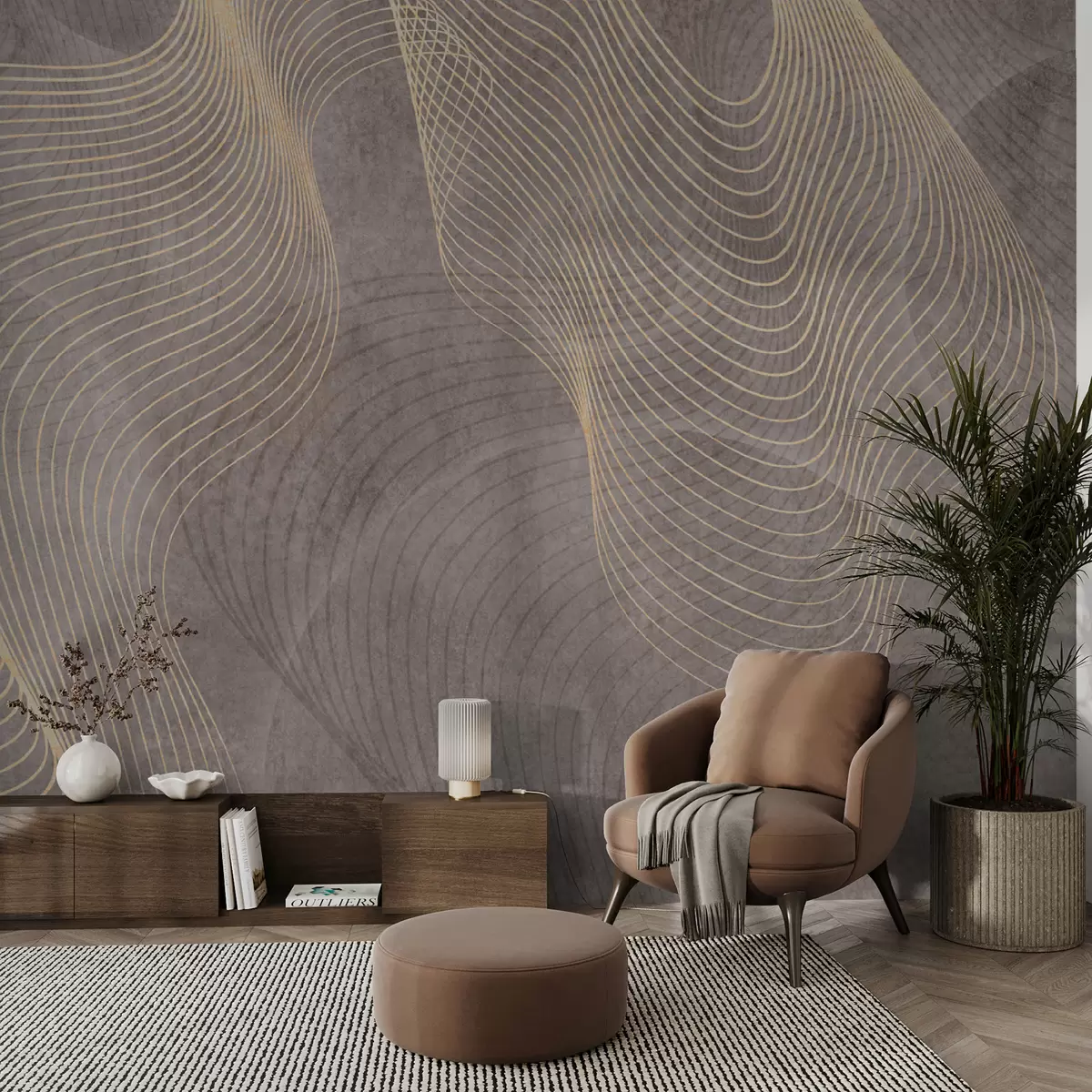 Peintures murales Lignes ondulées dans les couleurs sable et beige Nr. u97469