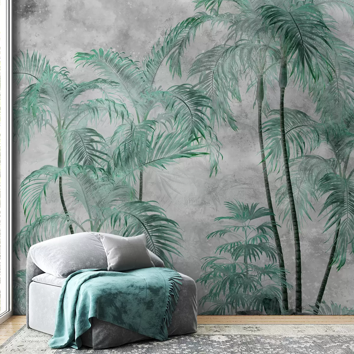 Peintures murales Palmiers tropicaux sur un mur en béton Nr. u98586v1
