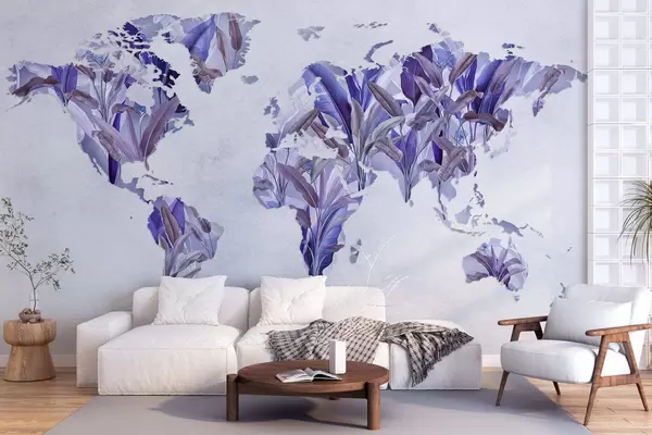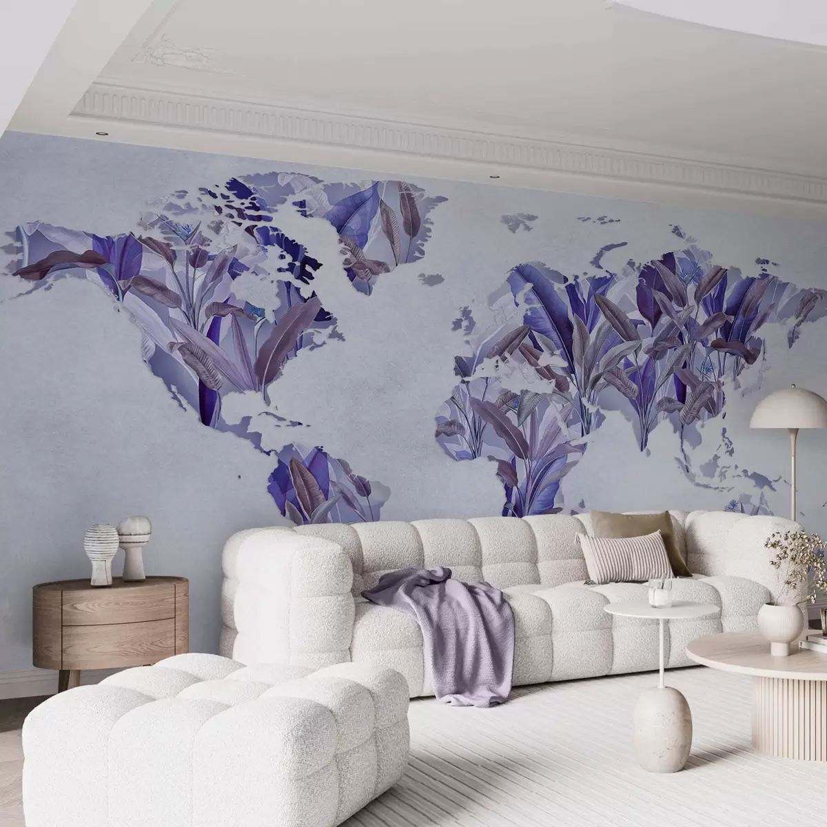 Peintures murales Une carte du monde violette réalisée à partir de feuilles de bananier Nr. c00007v1