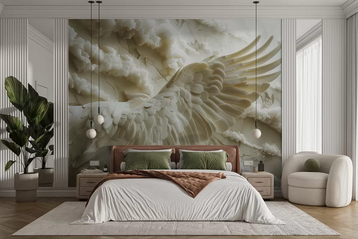 Peintures murales Aigle blanc volant en 3D sur fond de nuages et de marbre Nr. w01476