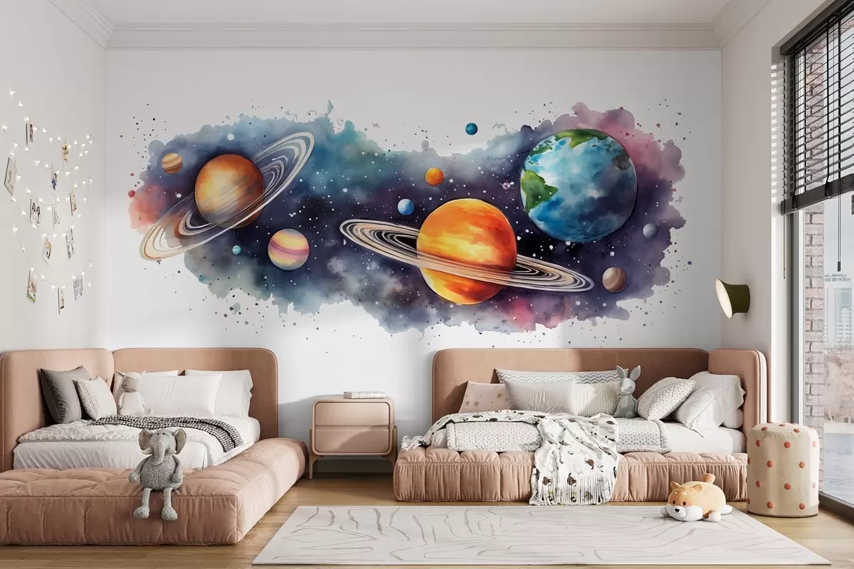 Peintures murales Aquarelle planètes, espace, cosmique, Terre, Saturne Nr. w01802