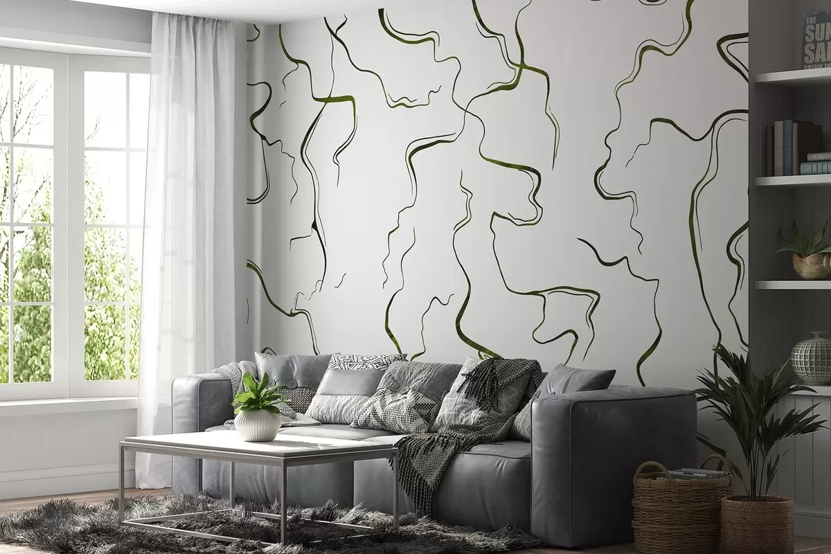 Peintures murales Lignes géométriques, style encre, abstraction, couleurs vertes Nr. w03436