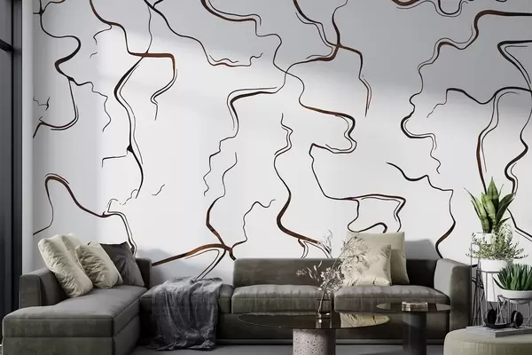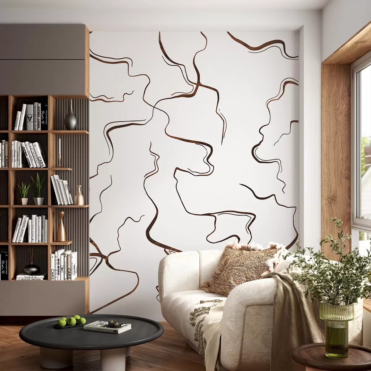 Peintures murales Lignes géométriques, style encre, abstraction, couleurs brunes Nr. w03436v1