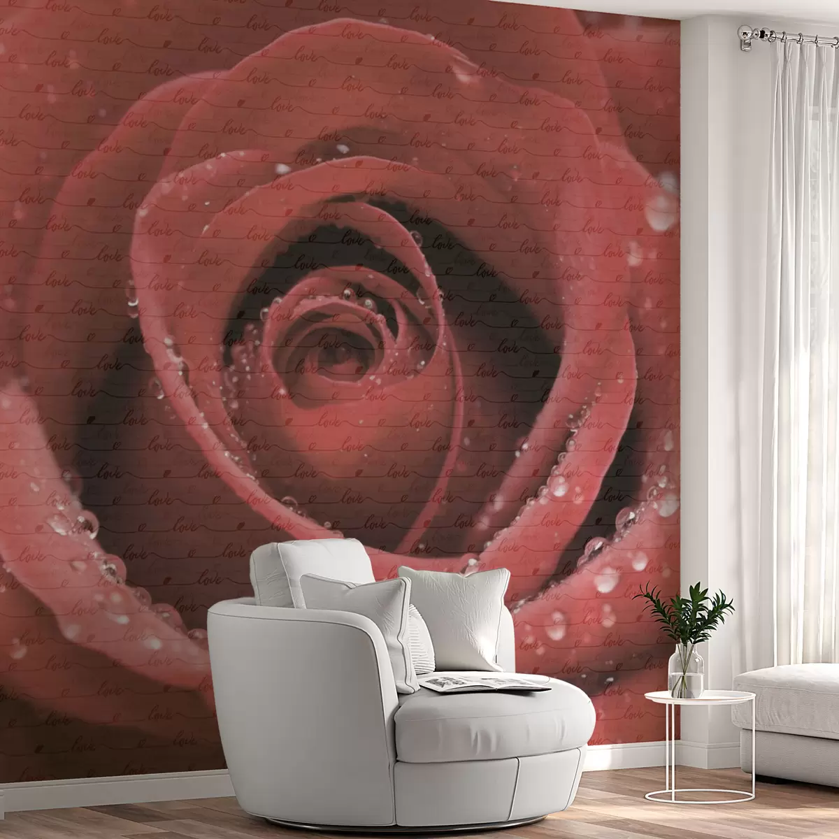Peintures murales Rose et inscription Amour Nr. w03495