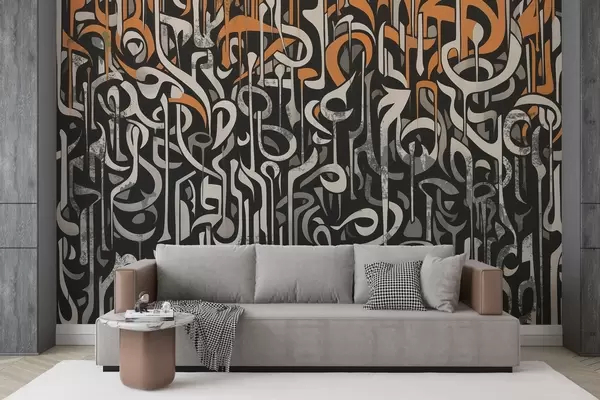Peintures murales Art de la rue avec orange et gris Nr. w03607
