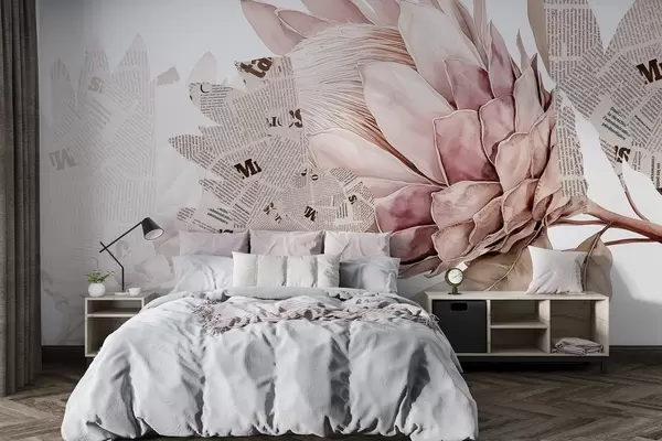 Peintures murales Protea flowers, newspaper art, floral, tropical, pastel beige colors Nr. w03667v4