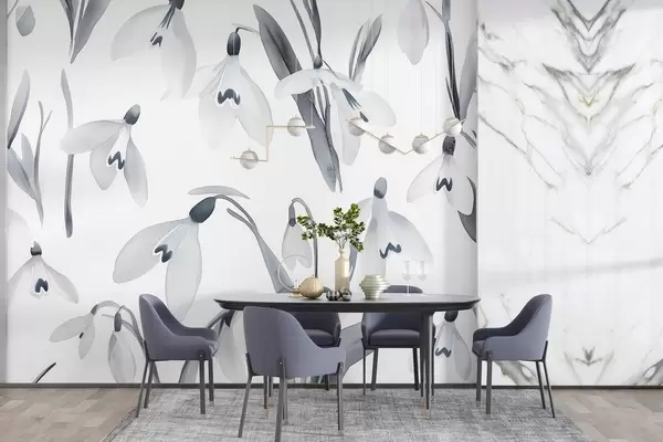 Peintures murales Fleurs de perce-neige en style aquarelle, couleurs grises Nr. w03754v1