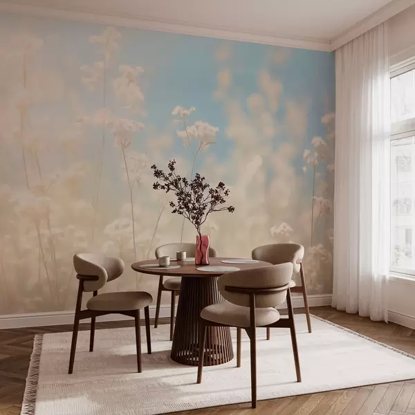 Peintures murales Champ délicat de fleurs séchées dans une lumière solaire floue Nr. w03801